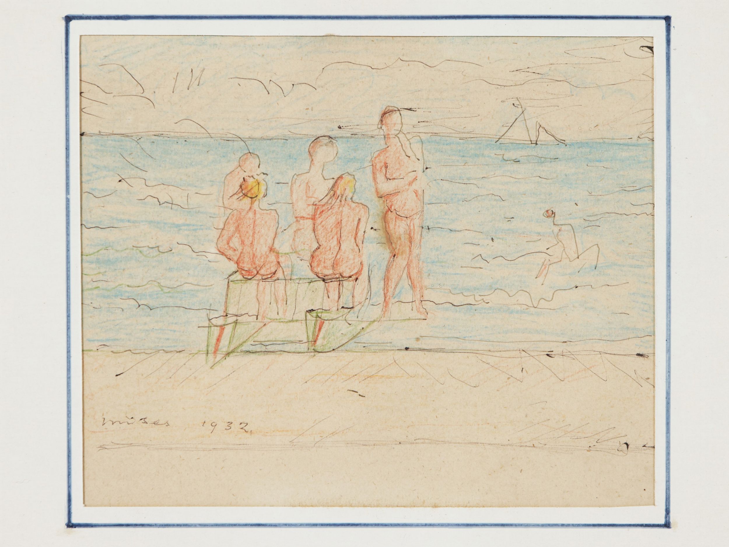 tecnica mista su carta, firmato e datato Moses 1932 in cornice, lievi difetti