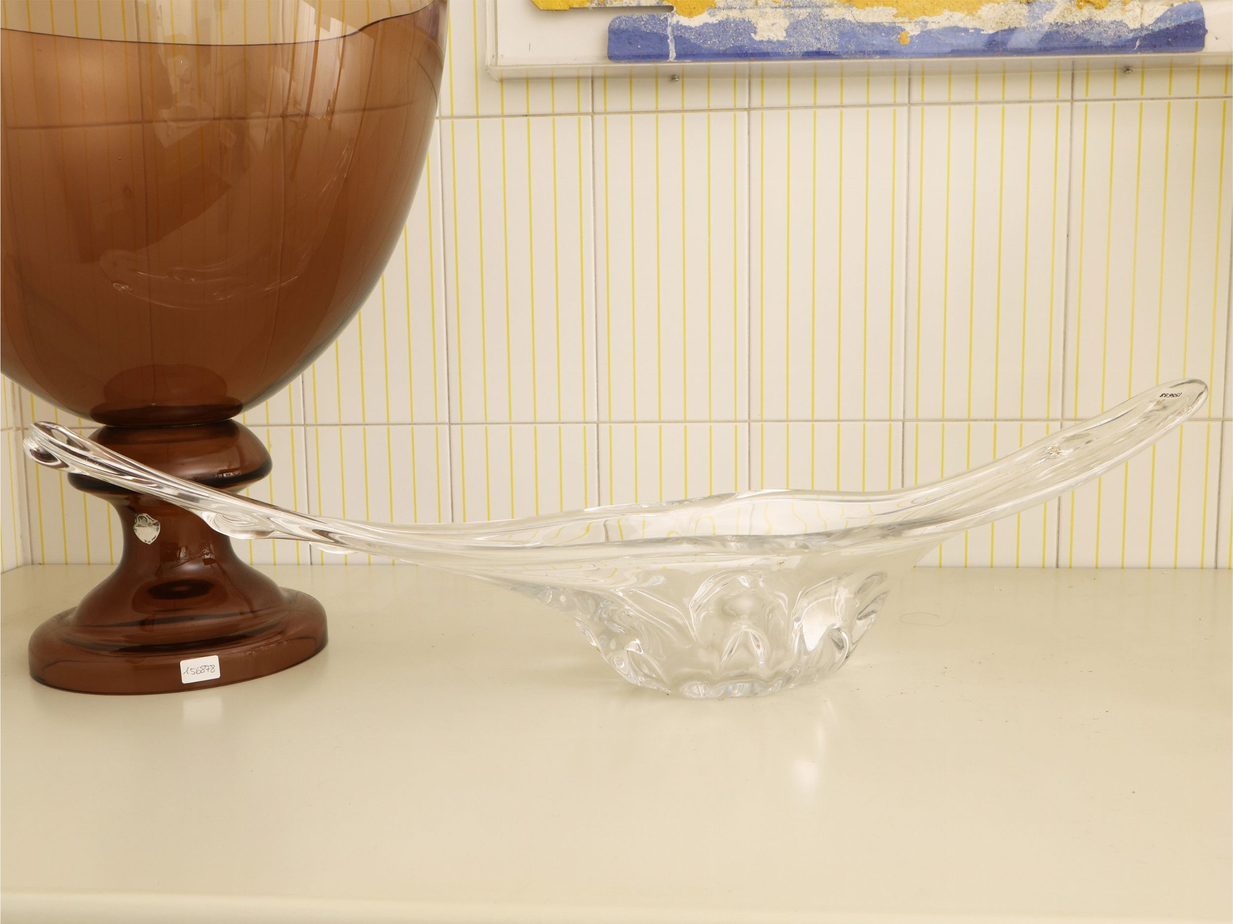 Centrotavola scultura in vetro soffiato trasparente