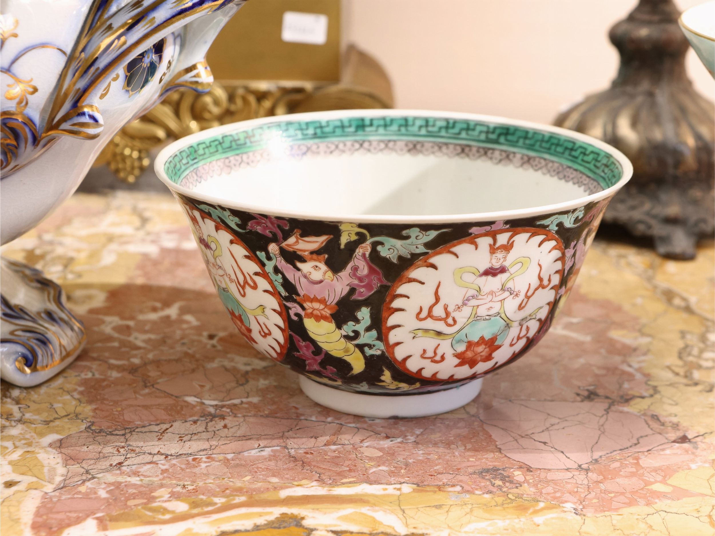 h cm 9, diam cm 17,5 Cina, dinastia Qing, XIX secolo Questa ciotola è esemplare della produzione cosiddetta Bencharong, ovvero prodotta in Cina per essere esplicitamente esportata in Thailandia, caratterizzata da motivi decorativi di gusto chiaramente siamese