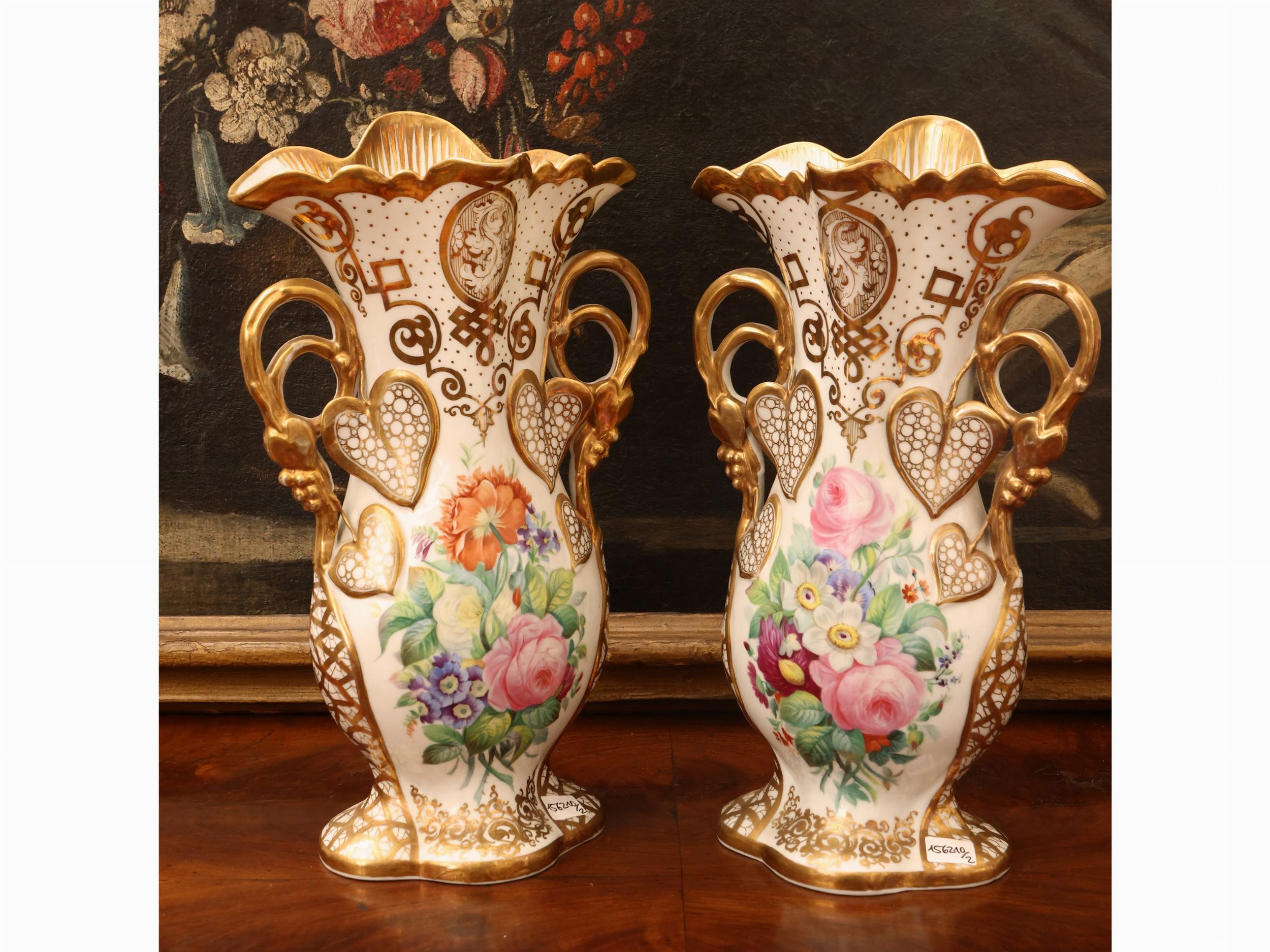 Francia, metà del XIX secolo dipinti con motivi floreali policromi e lumeggiature dorate, anse a foggia di tralci sinuosi