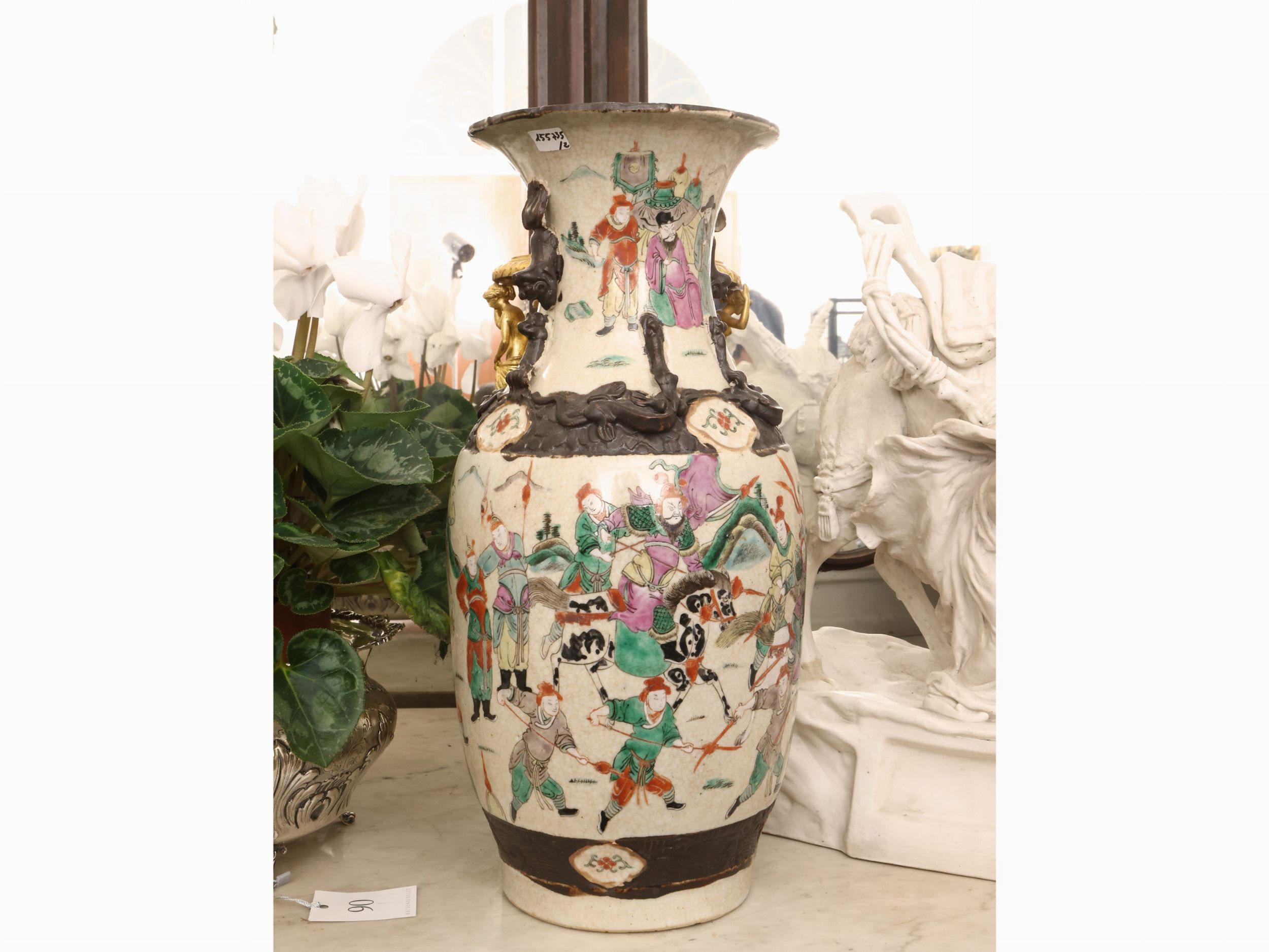 Cina, inizio del XX secolo dipinti con scene di battaglia policrome, dettagli neri