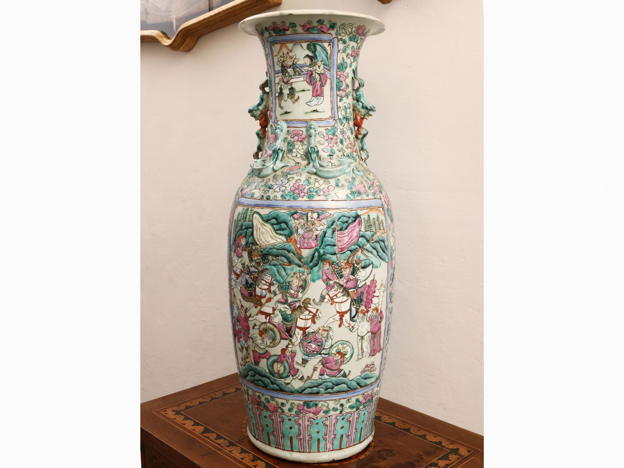 Cina, fine del XIX/inizio del XX secolo dipinti con scene di genere entro riserve e con motivi floreali nei toni del rosa e del verde