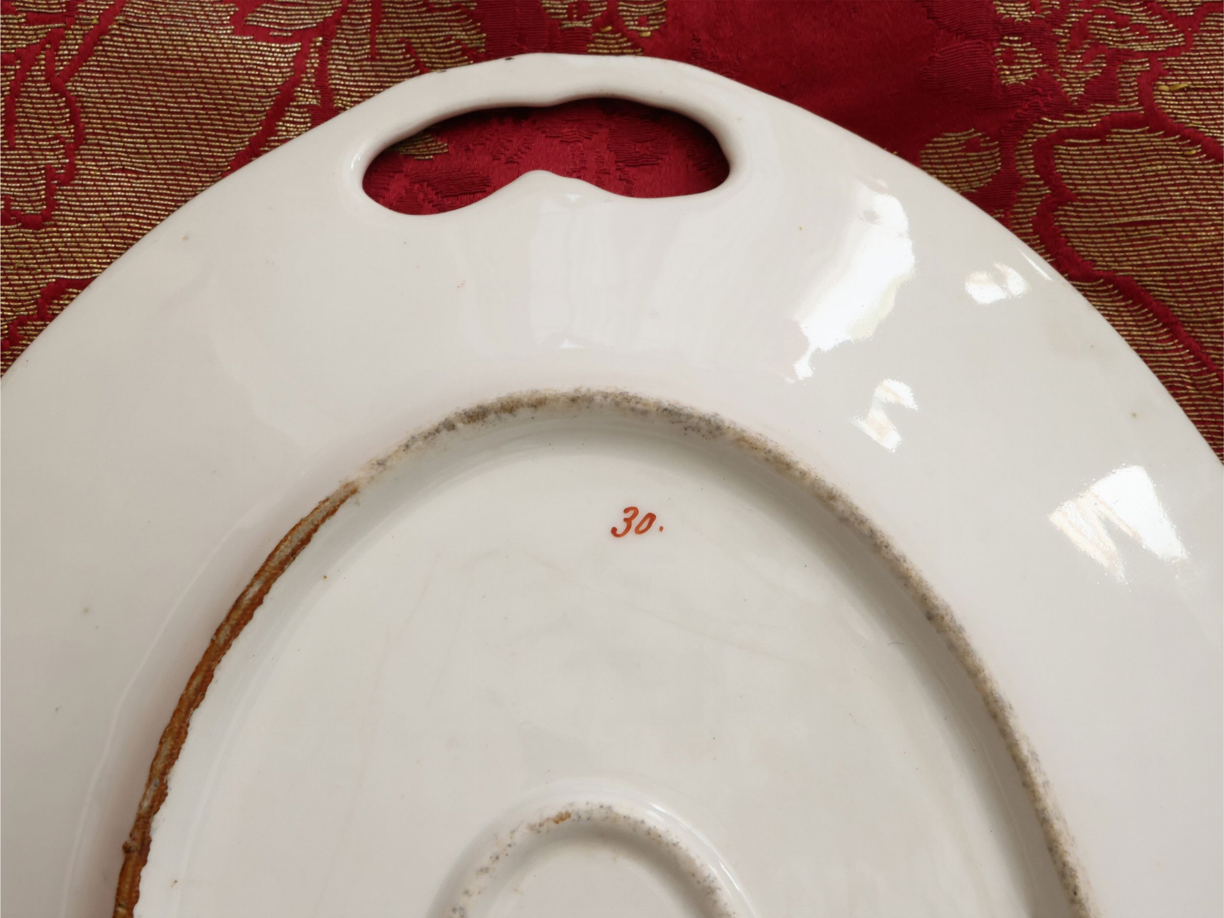 XIX/XX secolo un vassoio ovale in porcellana, dipinto con motivo di cammei ed una raccolta di placchette a bassorilievo