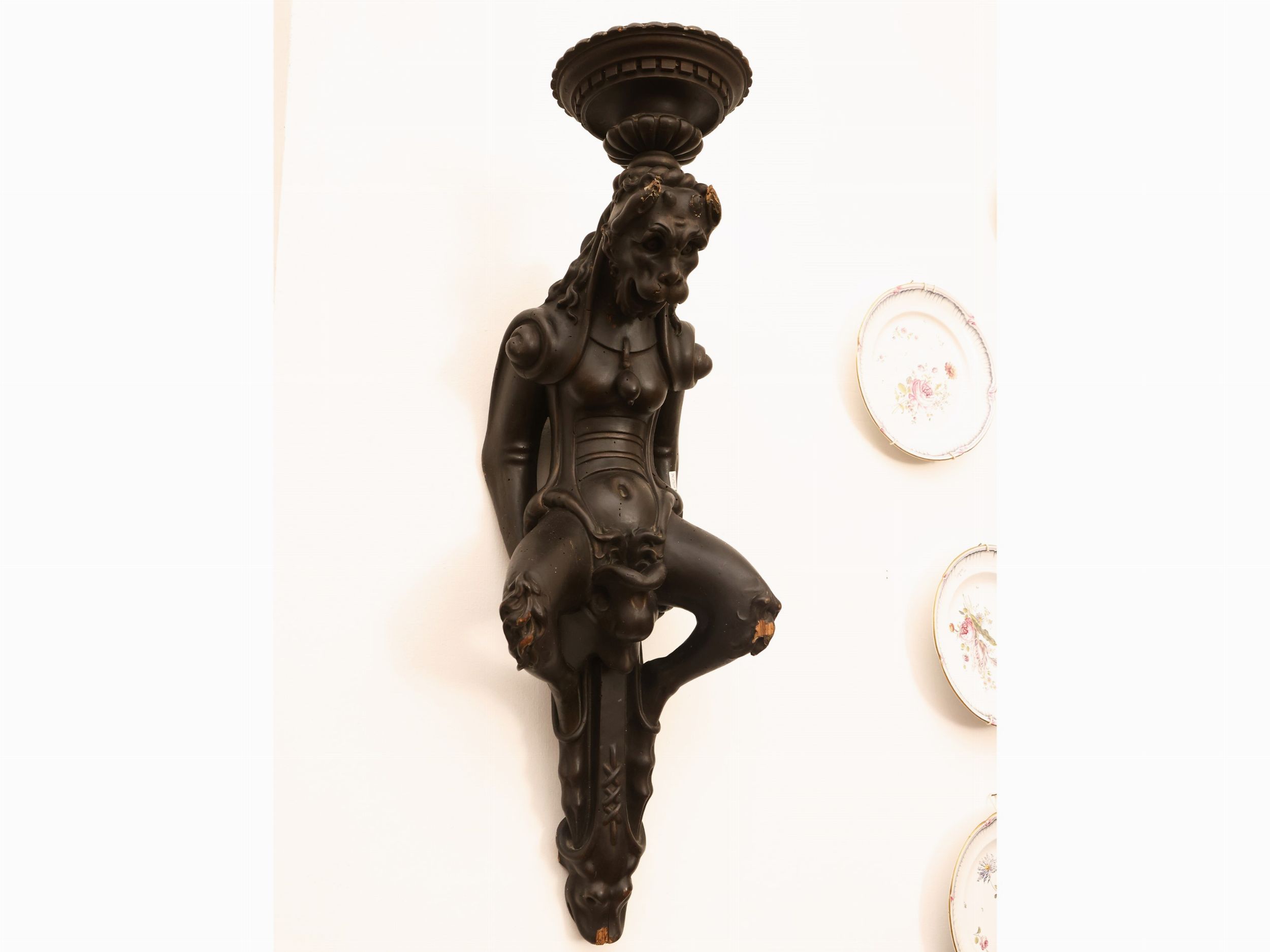 h cm 90 inizio del XX secolo copia a grandezza naturale della celebre scultura, il cui originale si trova custodito presso il Museo Bardini Firenze, realizzata in legno patinato ad imitazione del bronzo, alcuni difetti