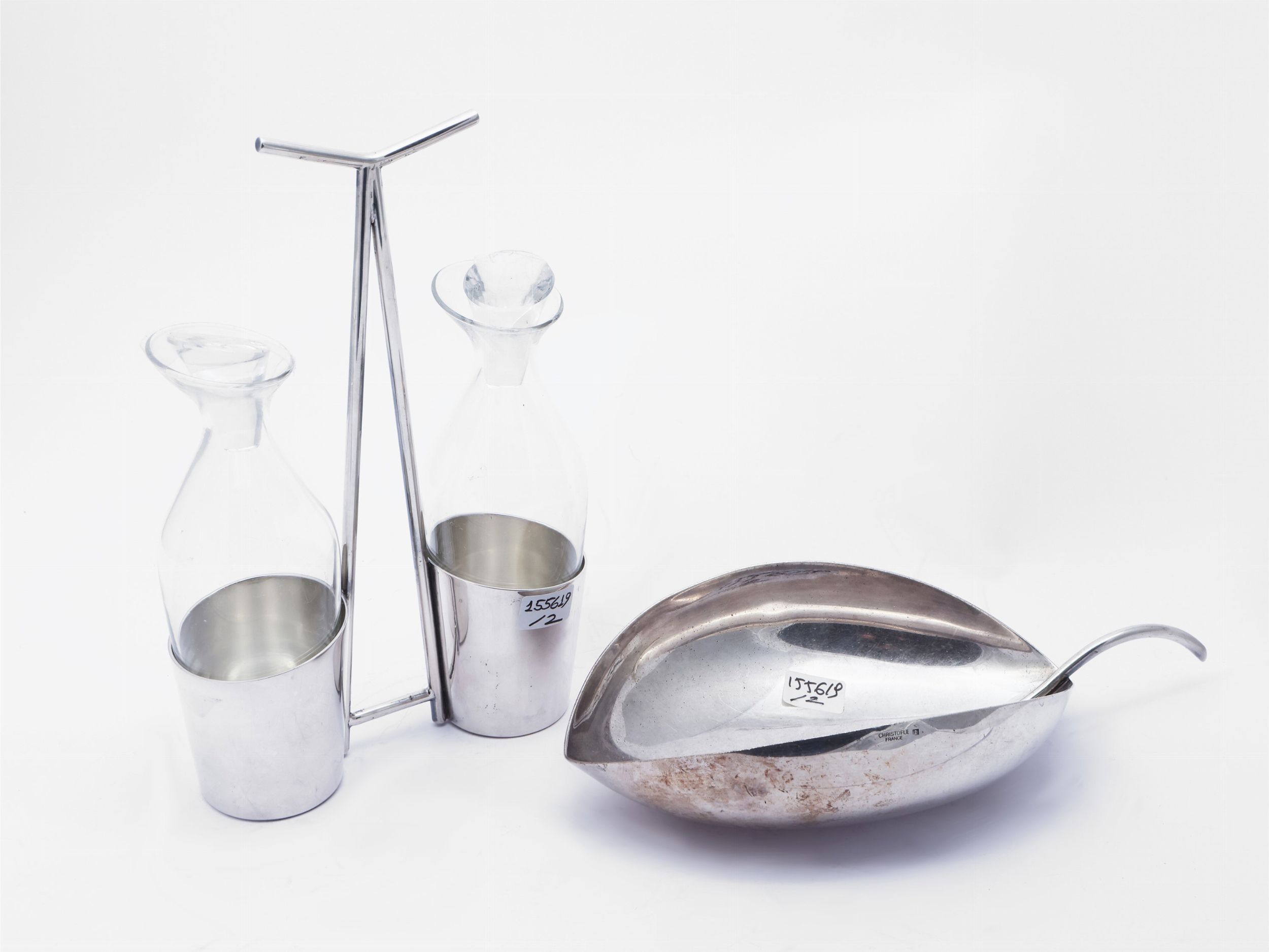 Due accessori da tavola in vetro e metallo argentato
