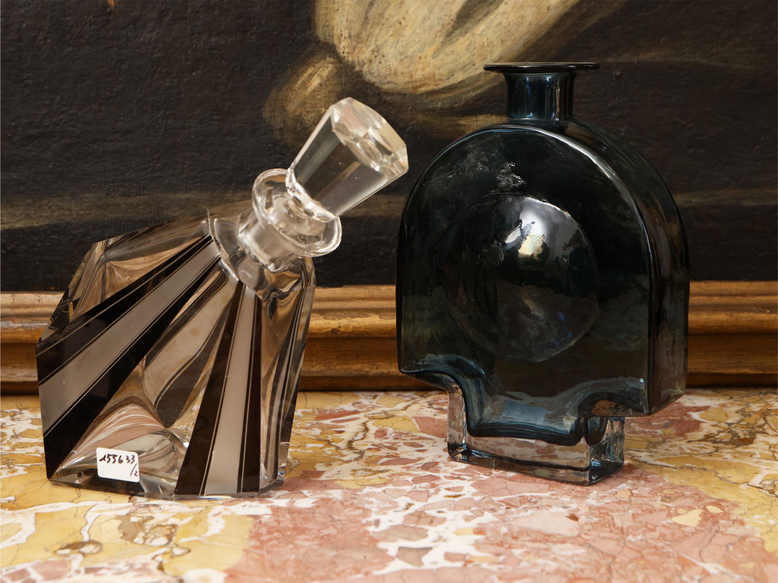 Due bottiglie da vino da collezione in cristallo