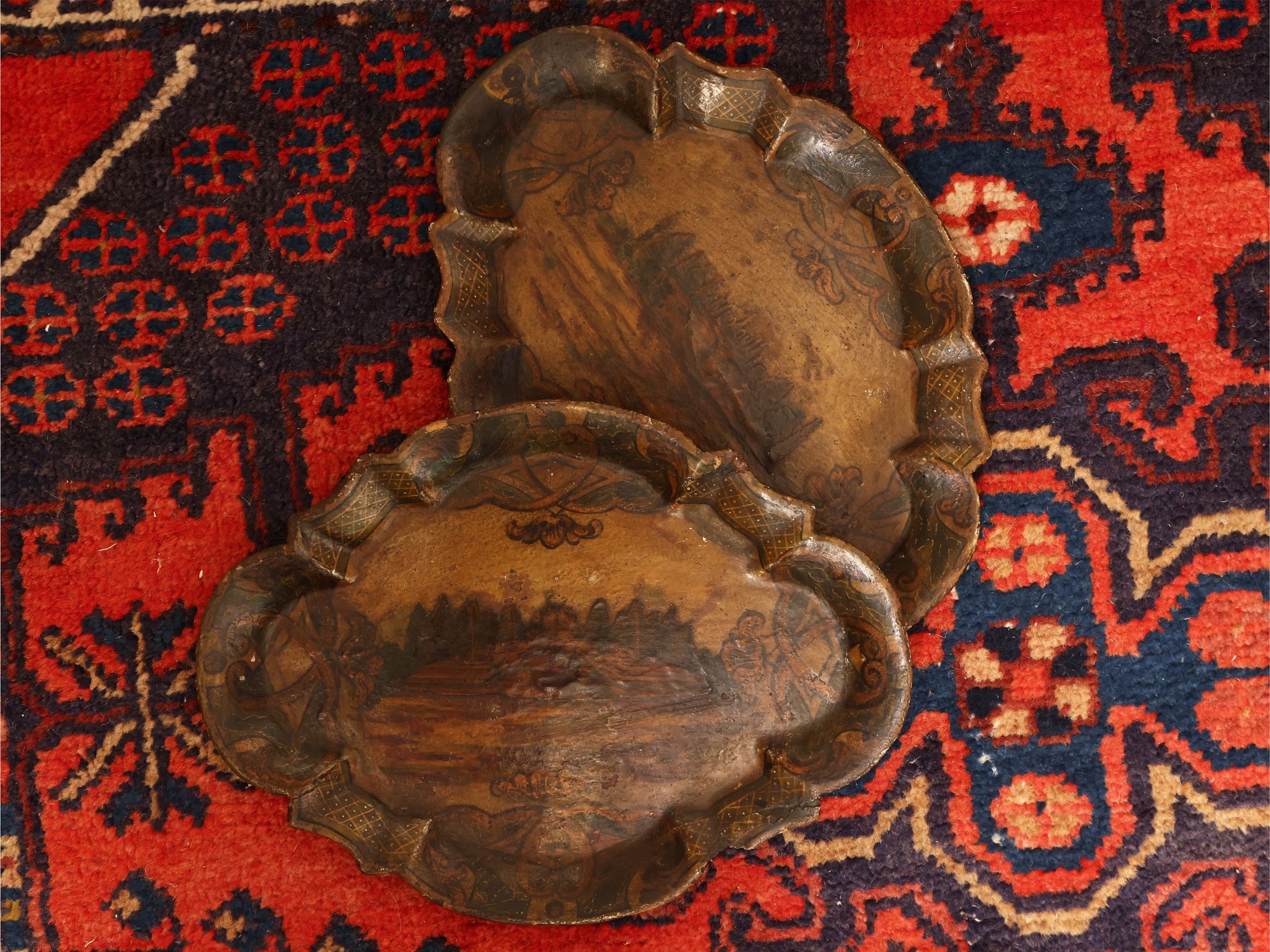 Piemonte, XVIII secolo uno dipinto con scena galante, l'altro con paesaggio, di forma ovale con bordo mosso, difetti