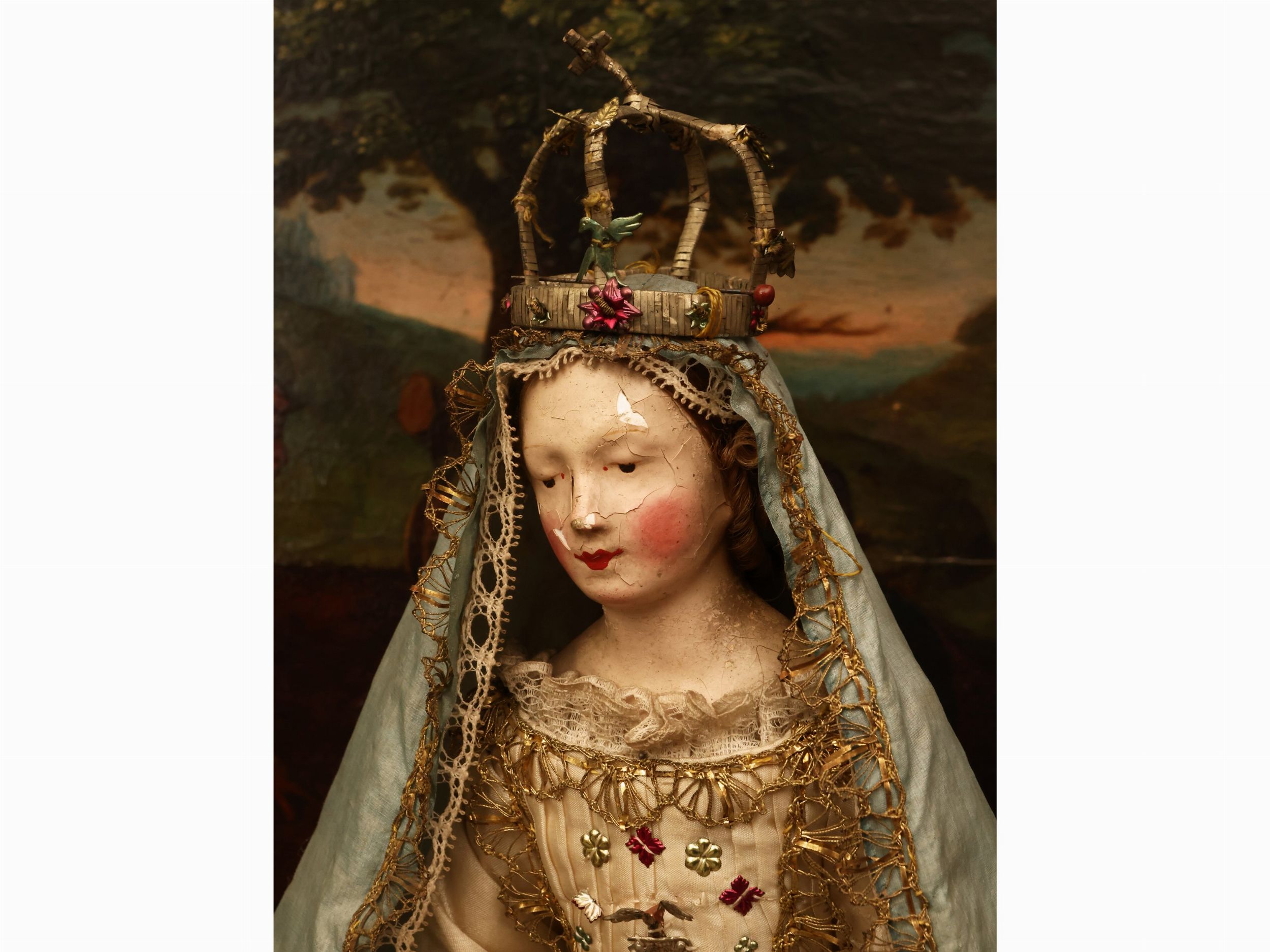 XIX secolo con abiti in seta impreziositi da gallone argentato, entro teca in cartone