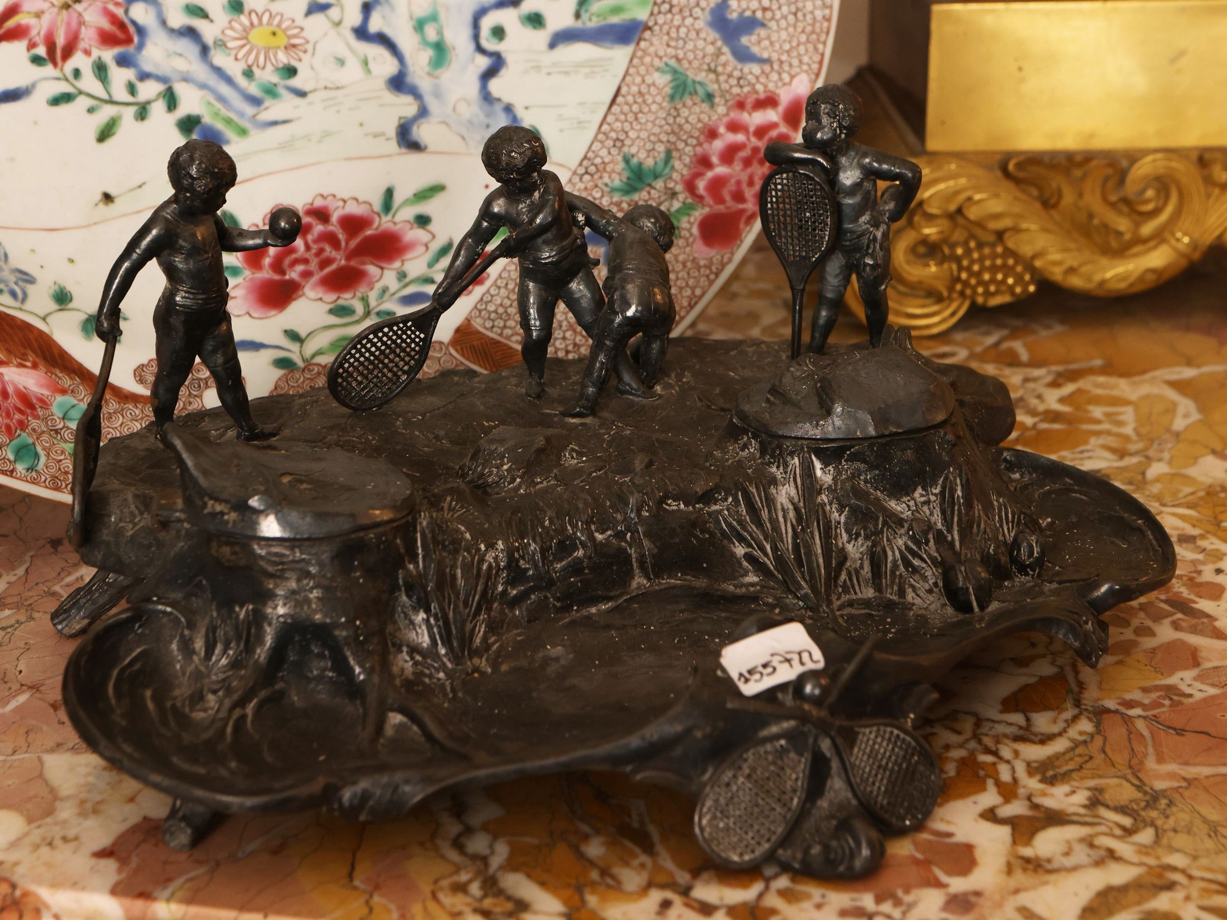 inizio del XX secolo decorato con puttini tennisti entro paesaggio lacustre, lievi difetti