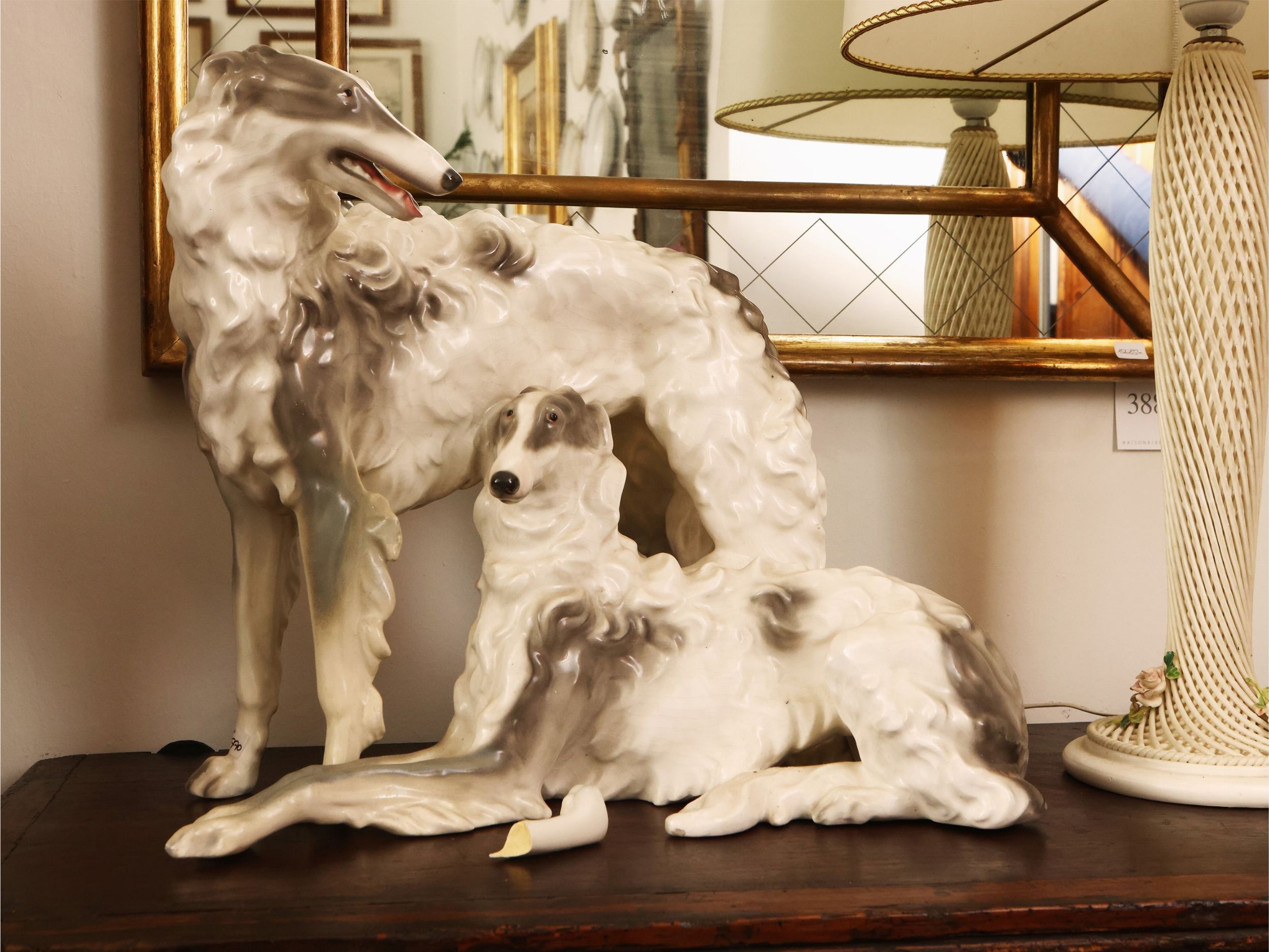 Austrai, Anni Trenta raffigurante una coppia di levrieri, difetti e restauri