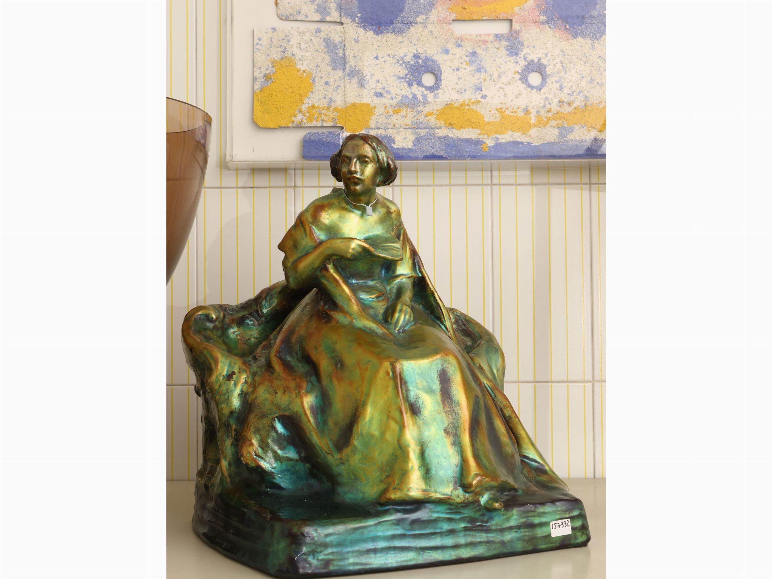 Grande gruppo in ceramica smaltata a lustro nei toni del verde, Zsolnay