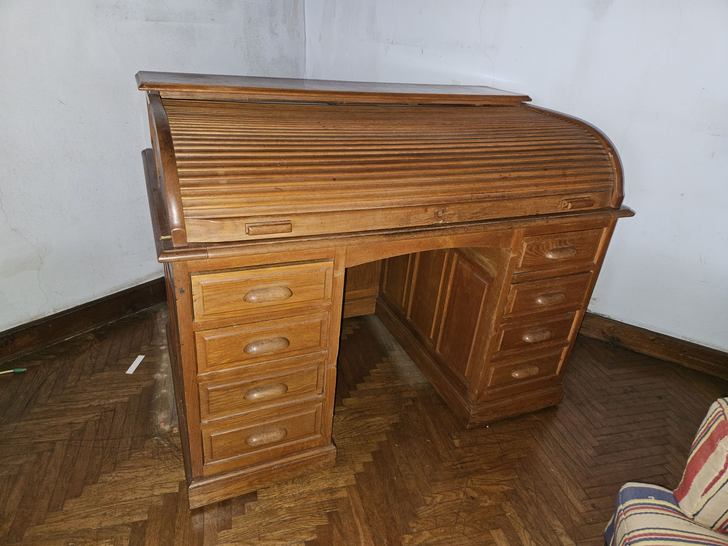 Grande scrivania da centro a rullo in rovere