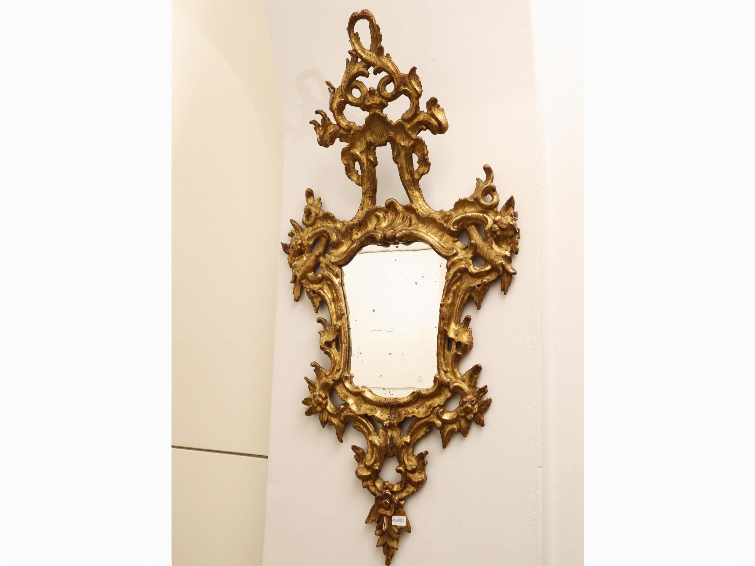 metà del XVIII secolo cornice intagliata a volute, alta cimasa a rocaille e motivi floreali ricadenti ai lati