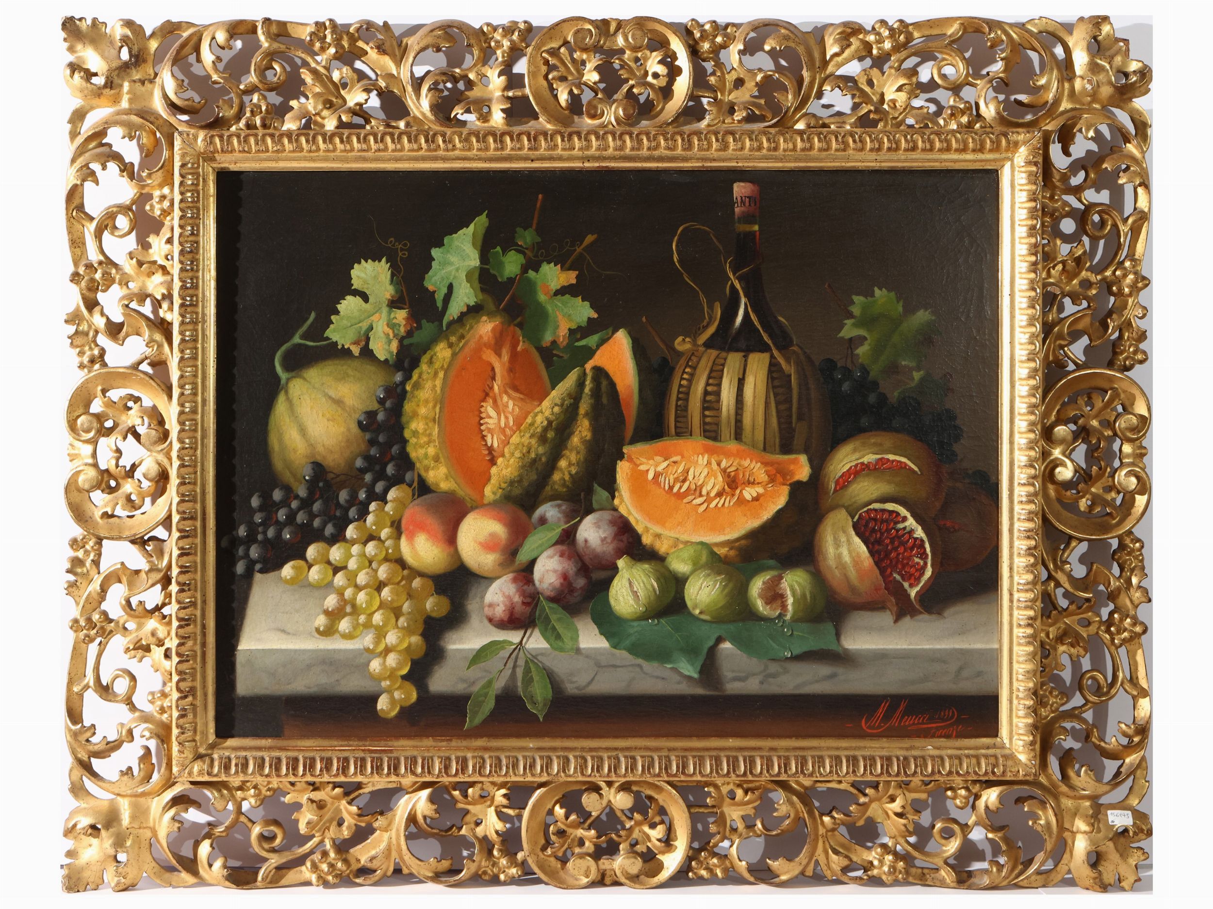 Natura morta con zucche, fichi, uva, melograni e fiasco di vino 1899