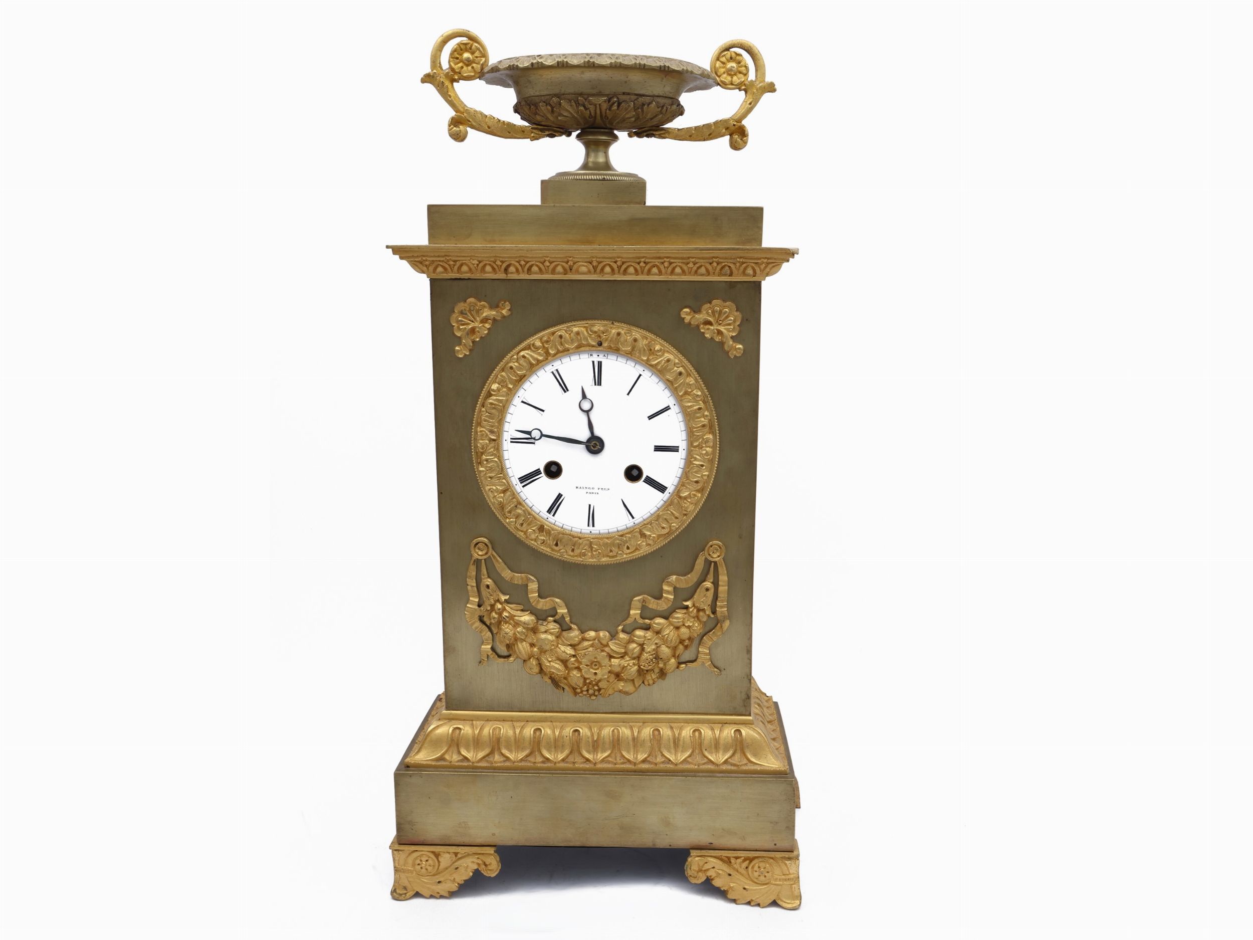 Orologio da camino in bronzo dorato, Raingo Frères