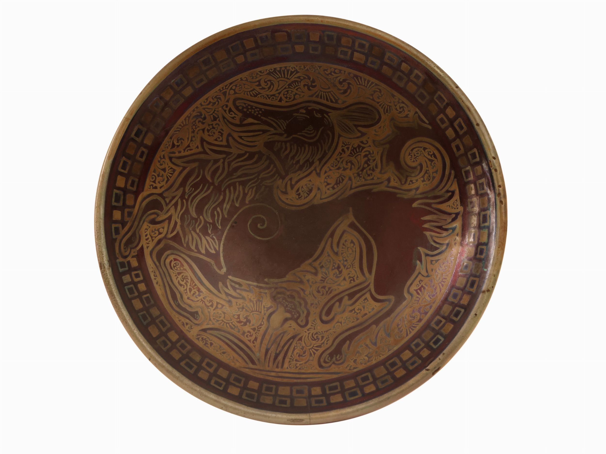 inizio del XX secolo dipinto a lustro con figura zoomorfa nei toni del bronzo e del rame, lievi difetti