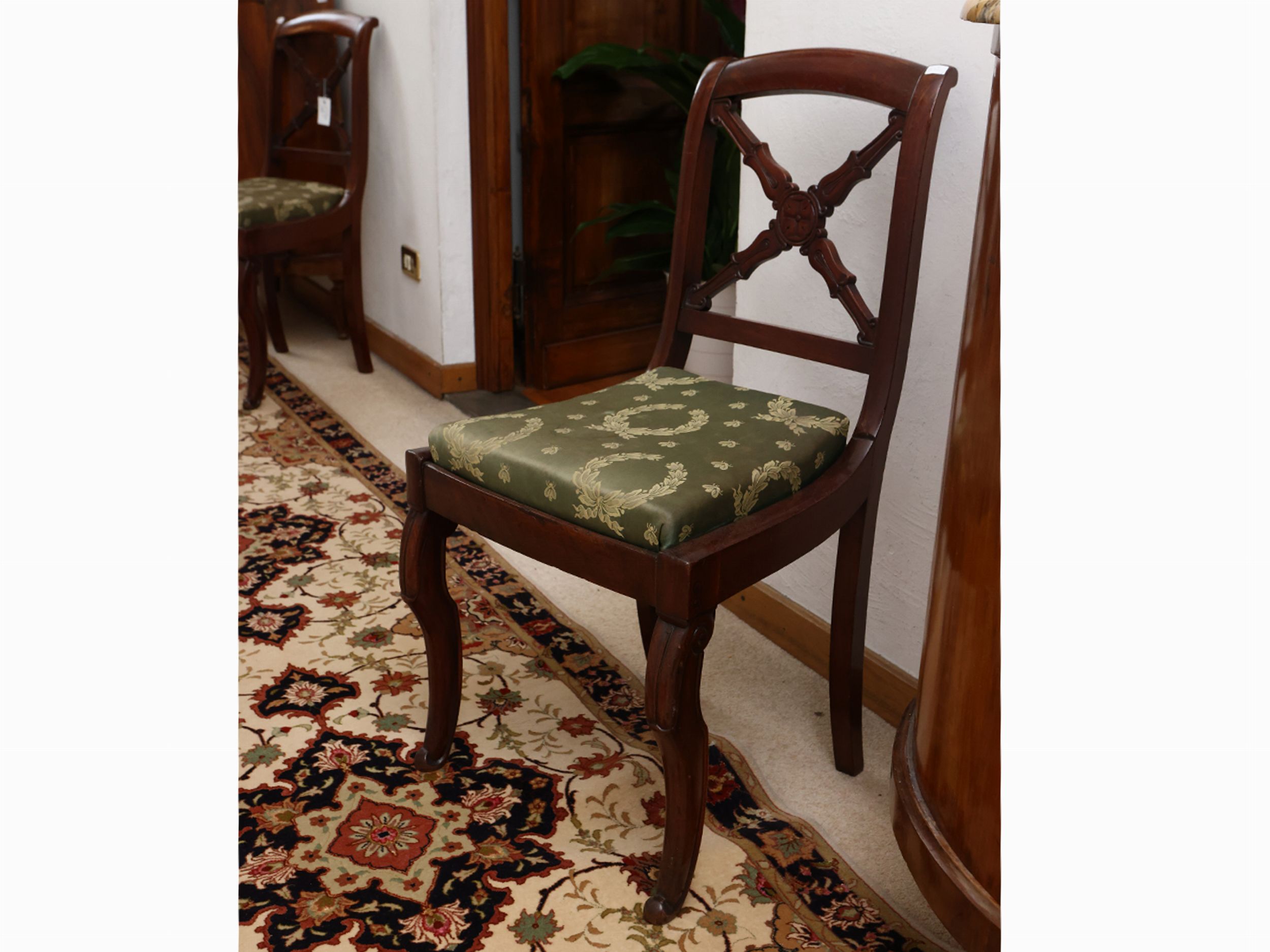 Serie di sei sedie in mogano, facenti parte di un finimento