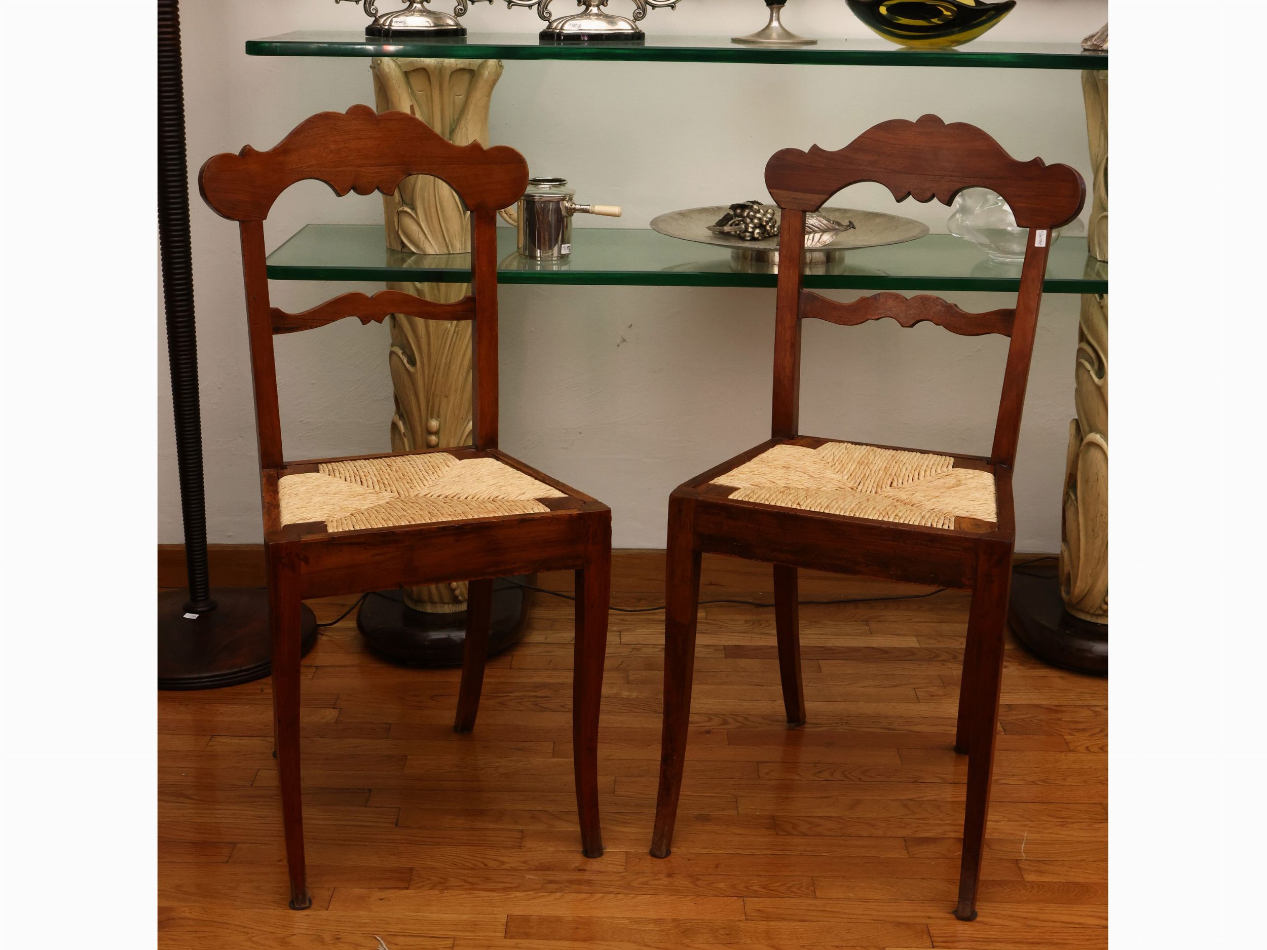 fine del XVIII secolo schienale sagomato con cartella mossa, sedile impagliato, gambe a sciabola