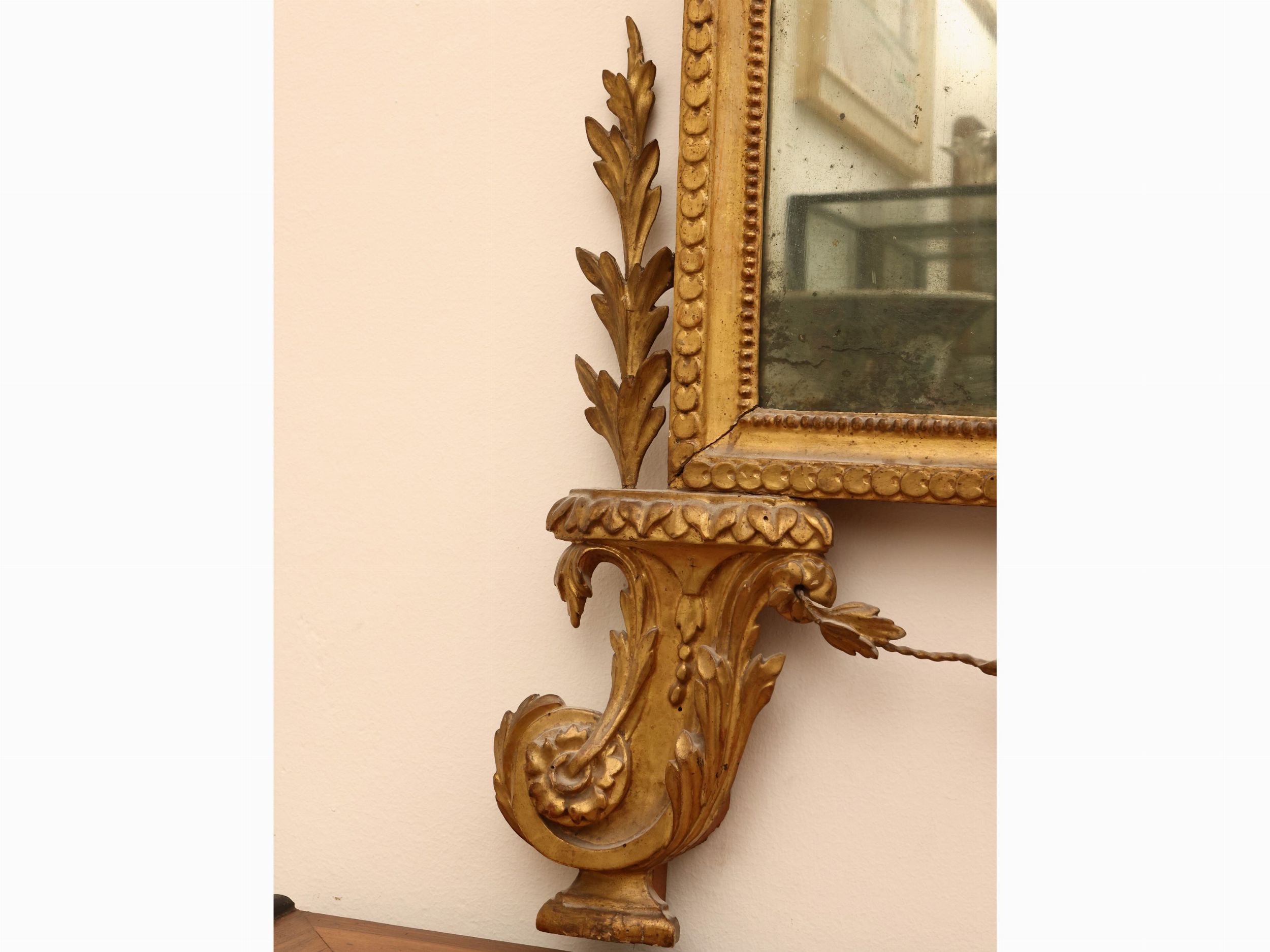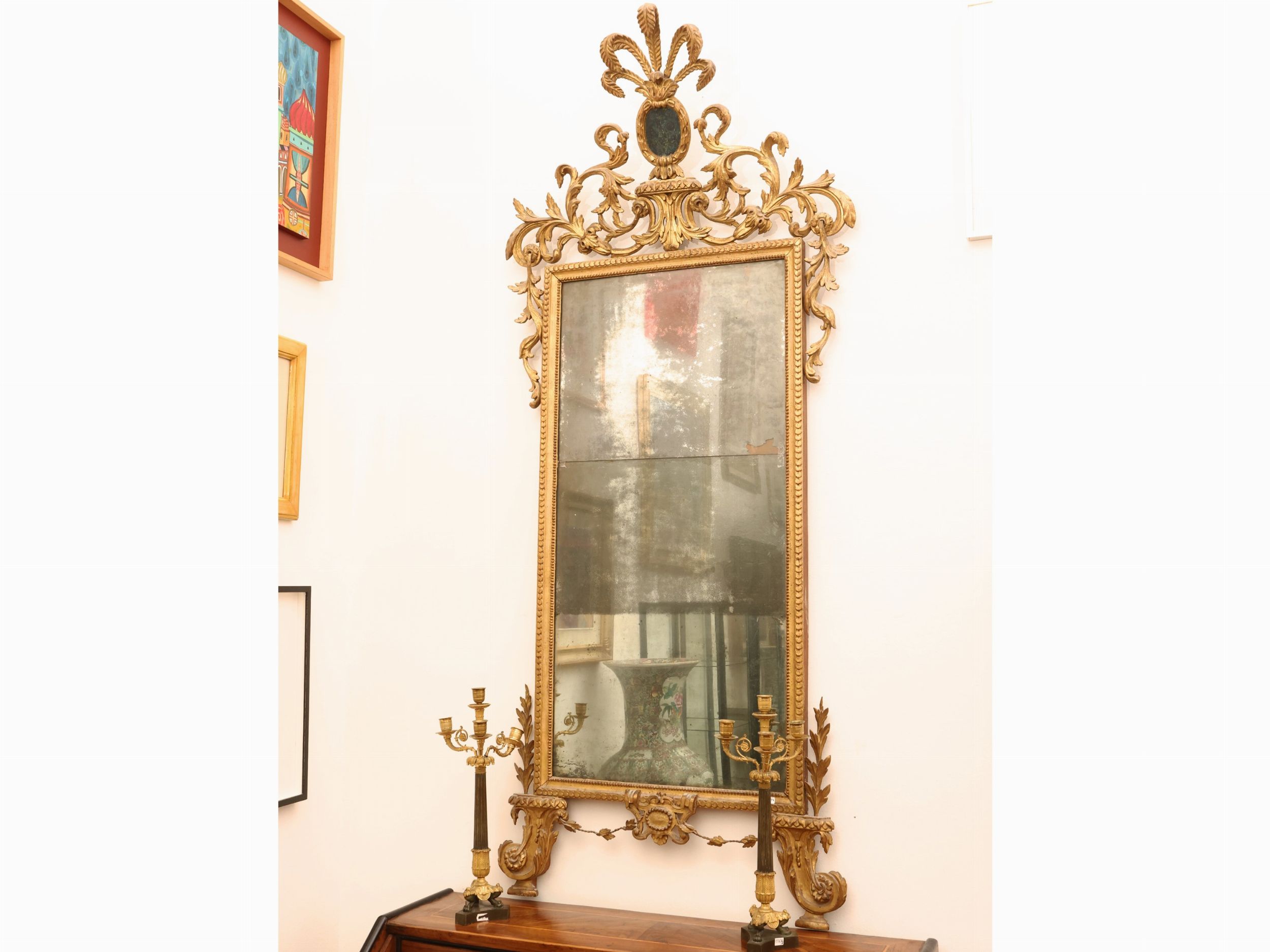 Specchiera con cornice in legno intagliato e dorato facente parte di una coppia