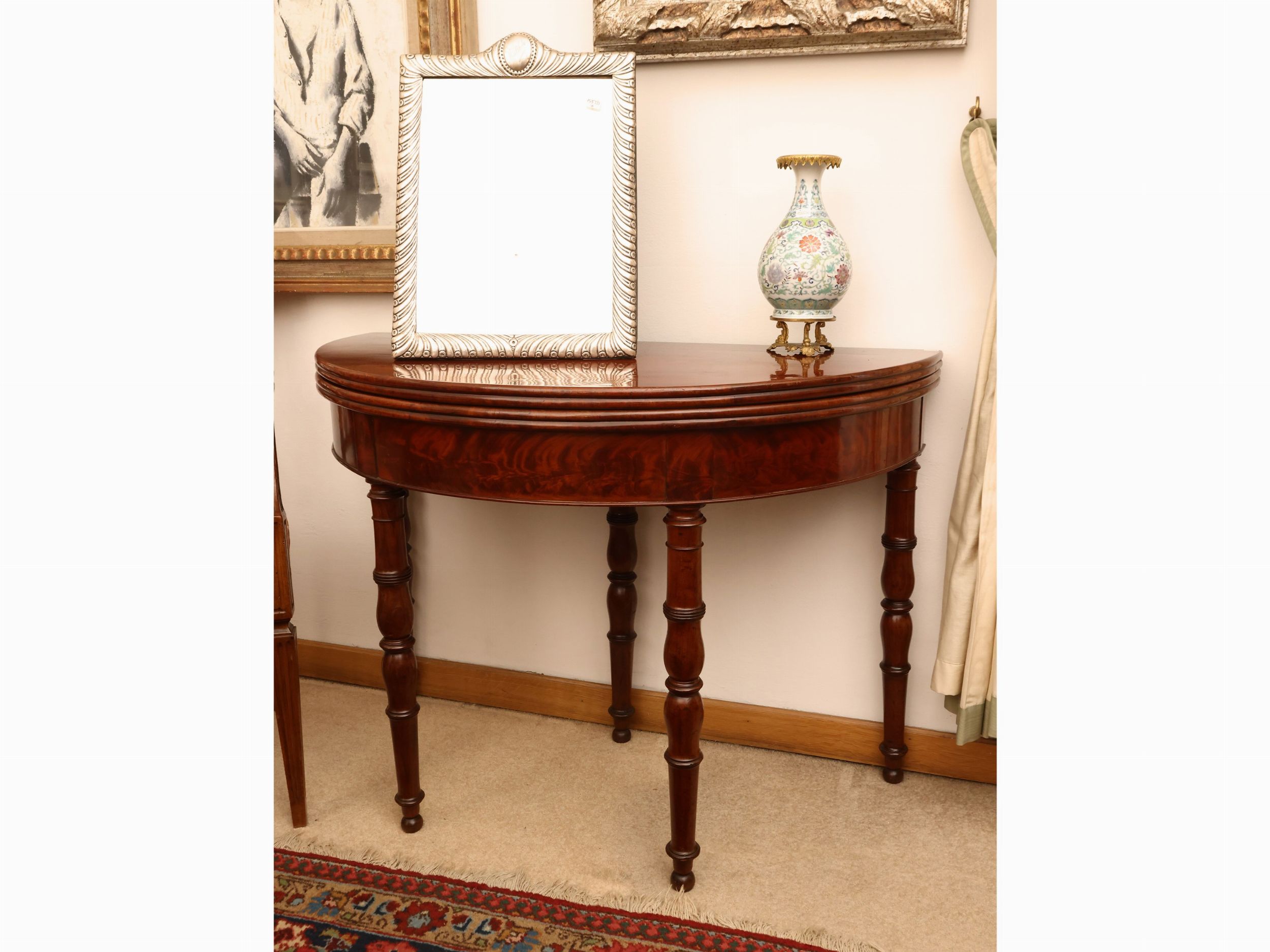 Livorno, metà del XIX secolo piano a mezzaluna da chiuso e circolare aperto, rivestito all'interno di panno verde, gambe tornite