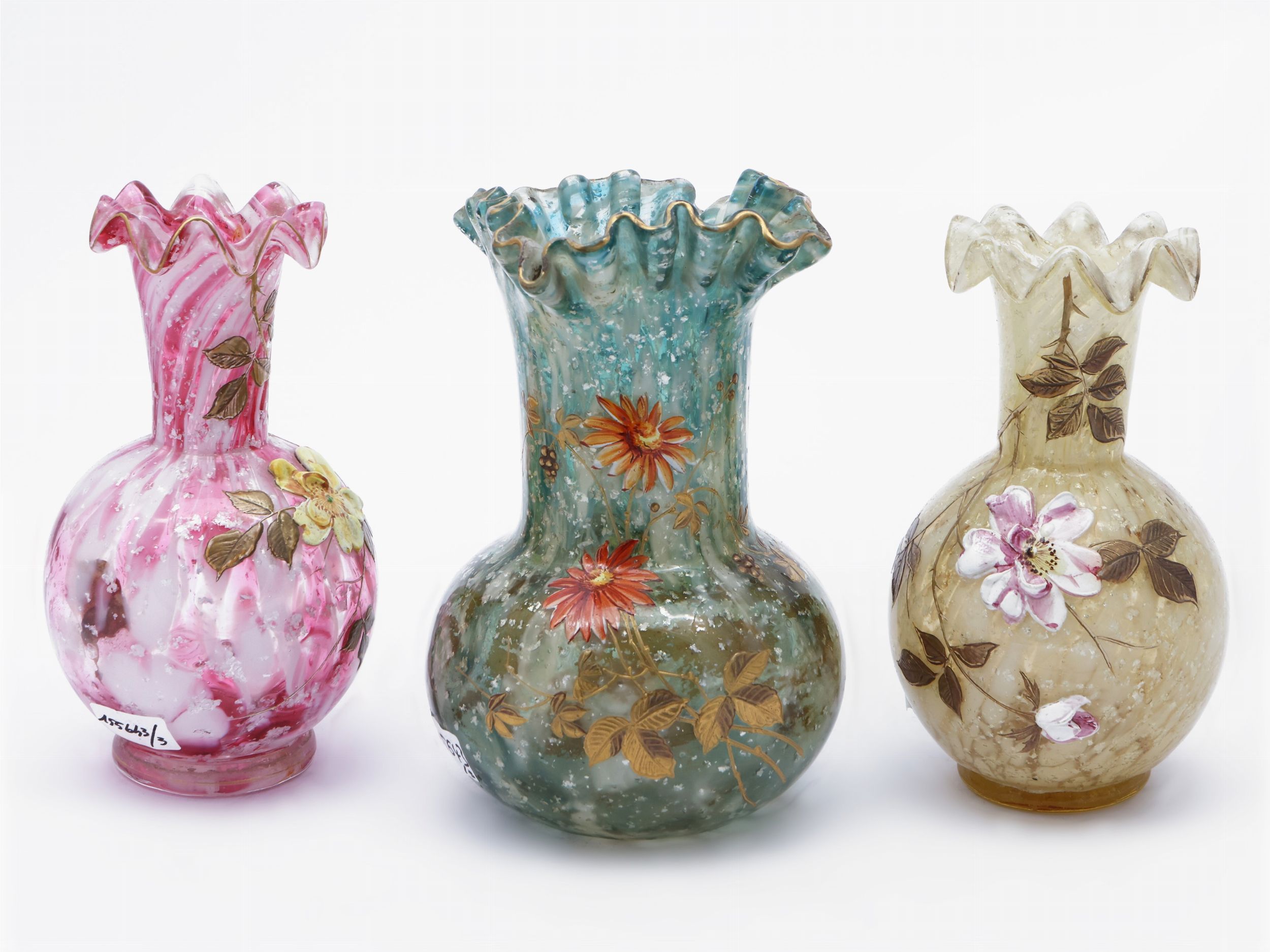Tre vasi in vetro soffiato