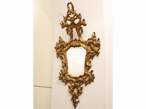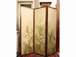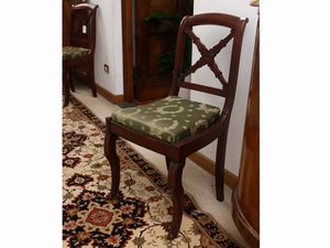 h cm 91 Francia, prima metà del XIX secolo braccioli a giorno desinenti a ricciolo, rivestite in raso verde con [..]