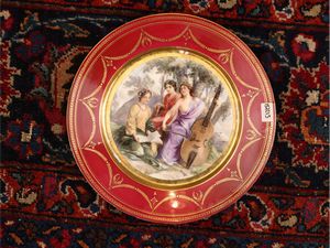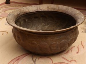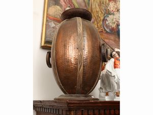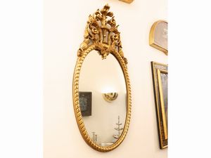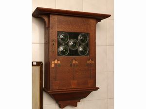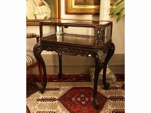 h cm 87,5x106x54 realizzato in stile settecentesco con materiale antico, di forma sinuosa, intarsiato con filettature [..]