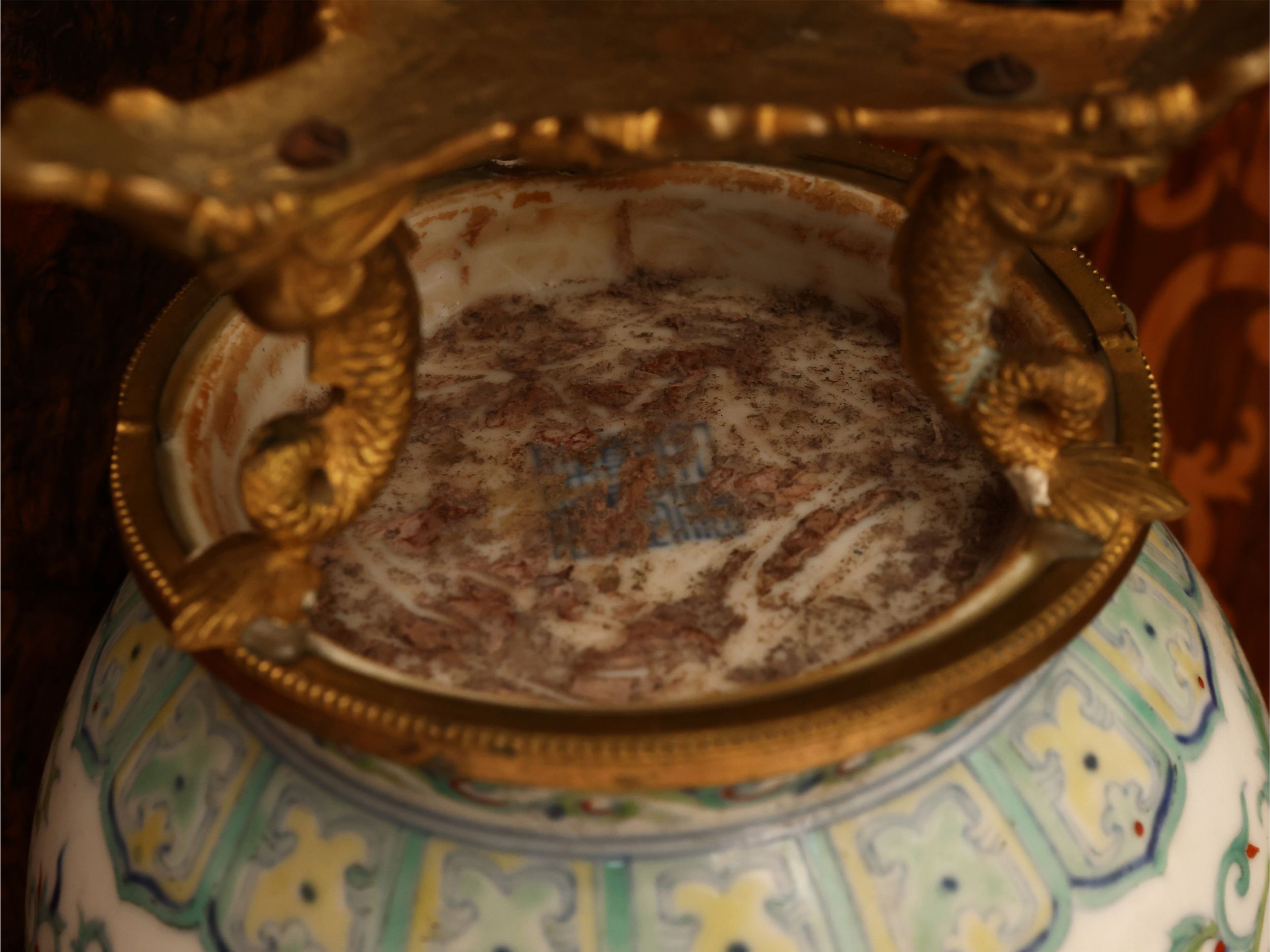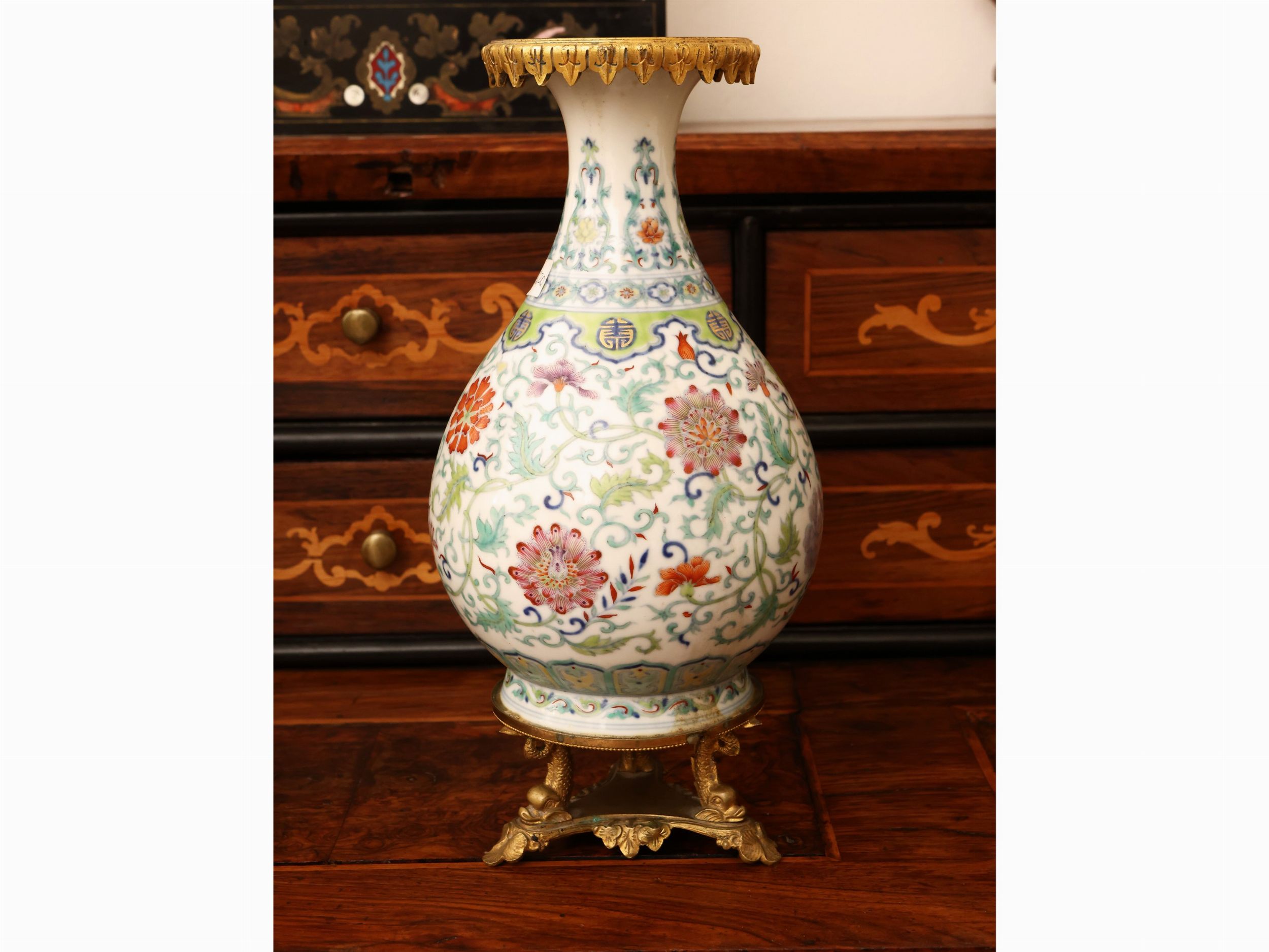 Cina e Europa, inizio del XX secolo decorato con smalti policromi a ricreare arabesco con motivo floreale, montatura in bronzo dorato con motivi di gusto neoclassico