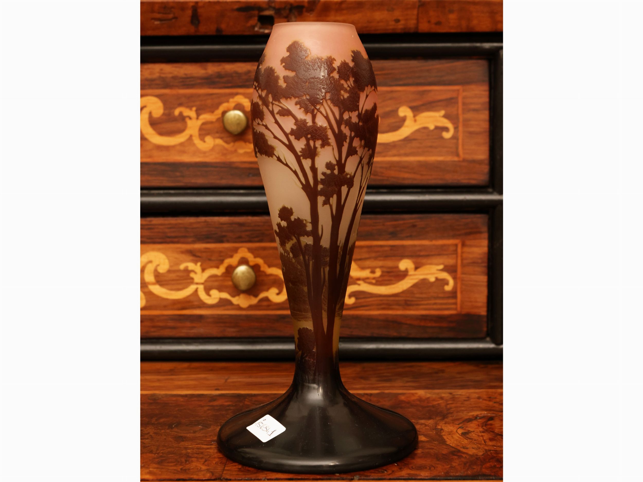 Francia, 1900 ca con decorazione a cammeo di paesaggio boschivo. Firma a cammeo Gallè sul corpo