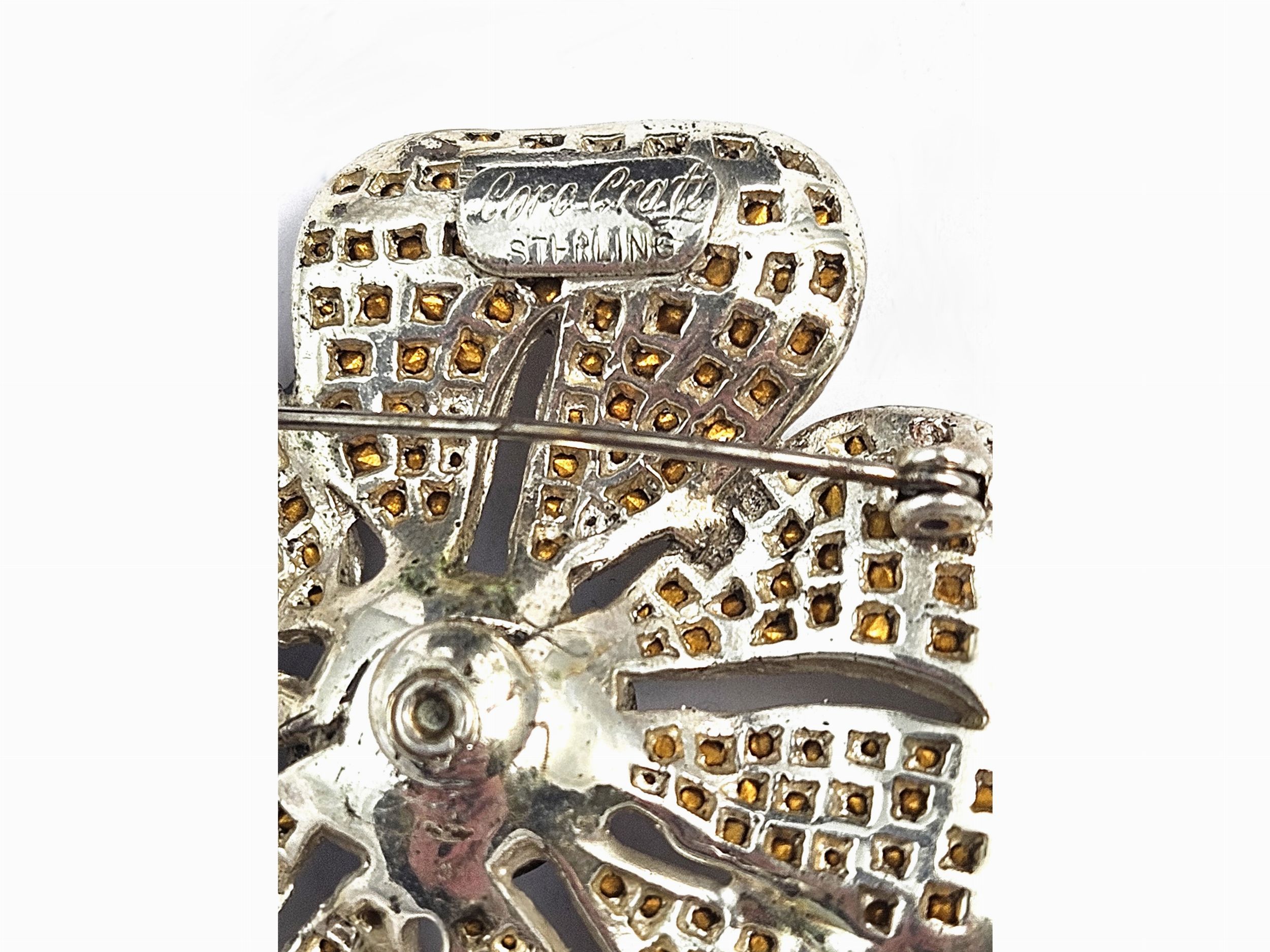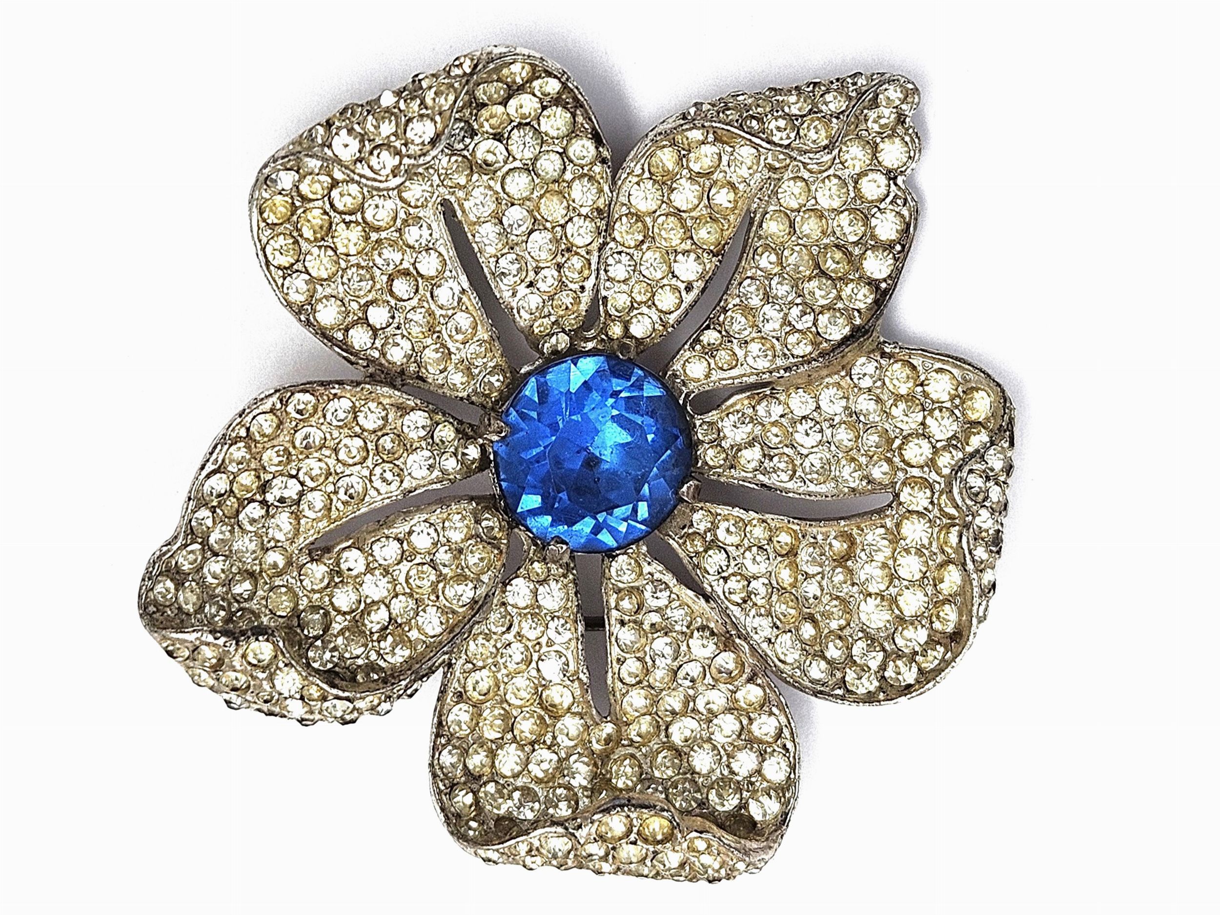 America, Anni Cinquanta realizzata come un fiore, con pavé di strass incolori e strass centrale color zaffiro