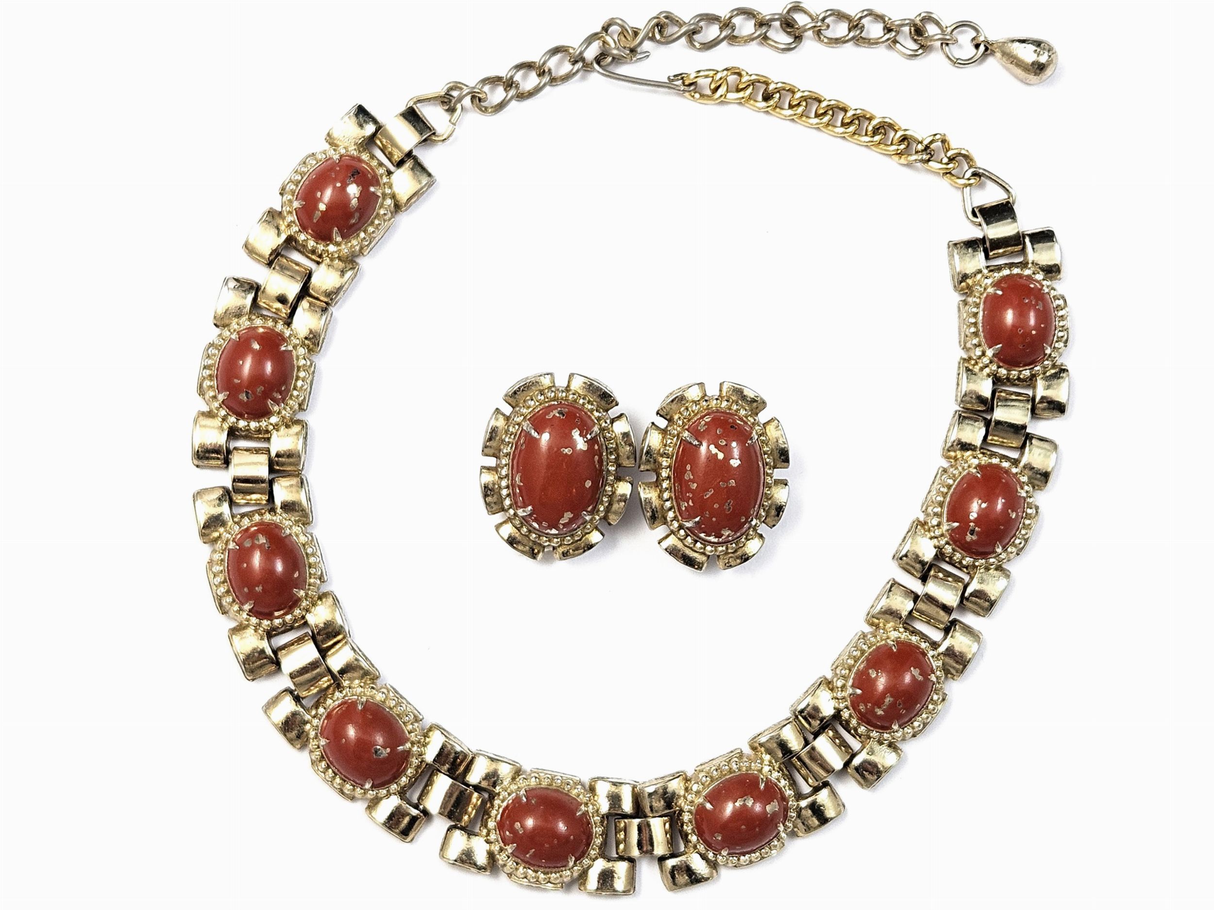 Anni CInquanta/Sessanta in metallo giallo, con cabochon smaltati color diaspro, difetti