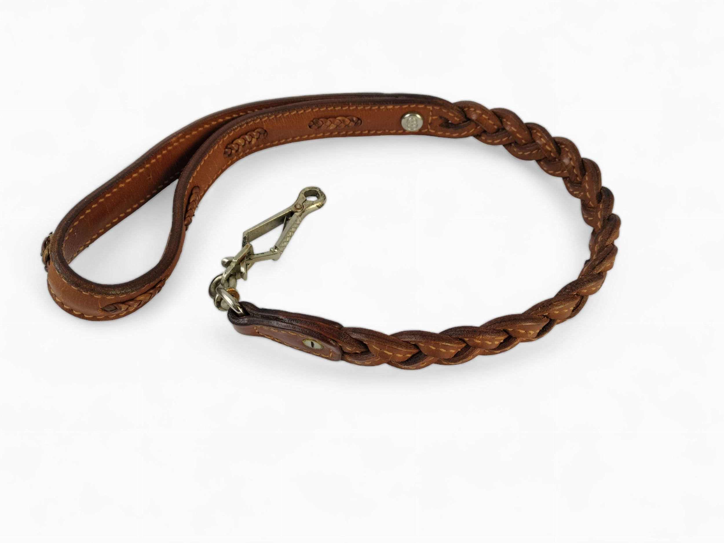 Gucci, Guinzaglio in pelle intrecciata marrone