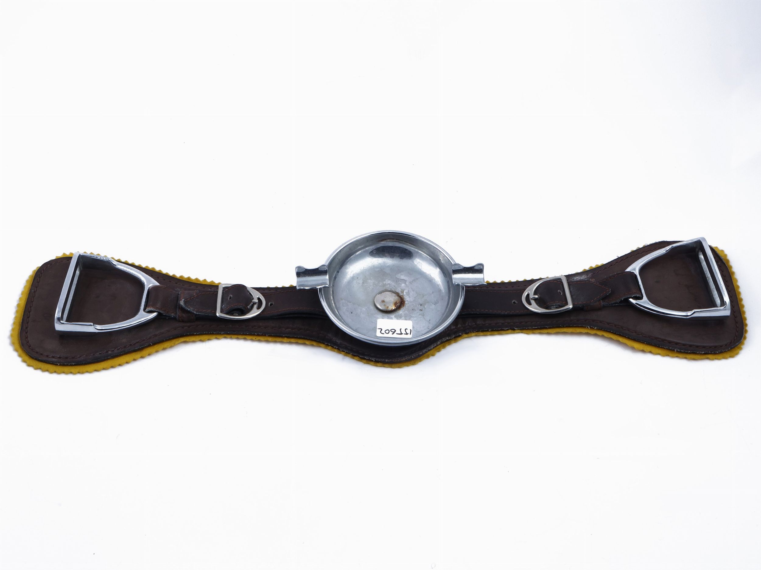 Anni Settanta in cuoio e metallo, ornato da staffe, lievi difetti