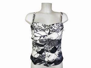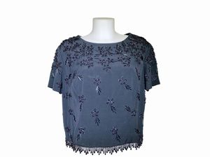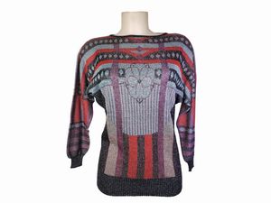 tg S Anni Ottanta fantasia geometrica nei toni dell'azzurro, rosso e viola