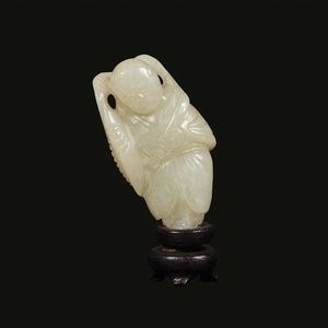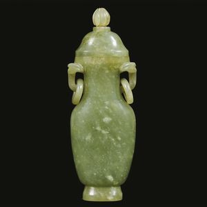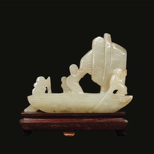 CONTENITORE, CINA, DINASTIA QING, SEC. XIX in giada bianca verde di lavanda e verde mela a forma nuvola di Ruyi [..]