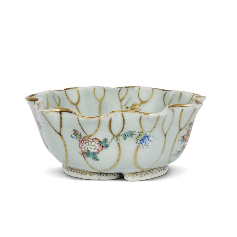 清 十九世纪 豆青加粉彩荷叶碗 高 5,5厘米 直径 14厘米