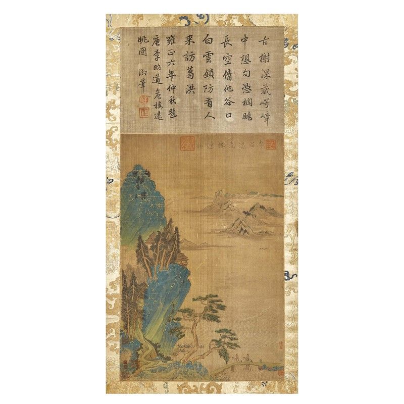 su seta, ornato di vari timbri di Yongzheng. Un'opera che cattura l'essenza del lontano, tra pennellate di maestria e la firma regale di Yongzheng.