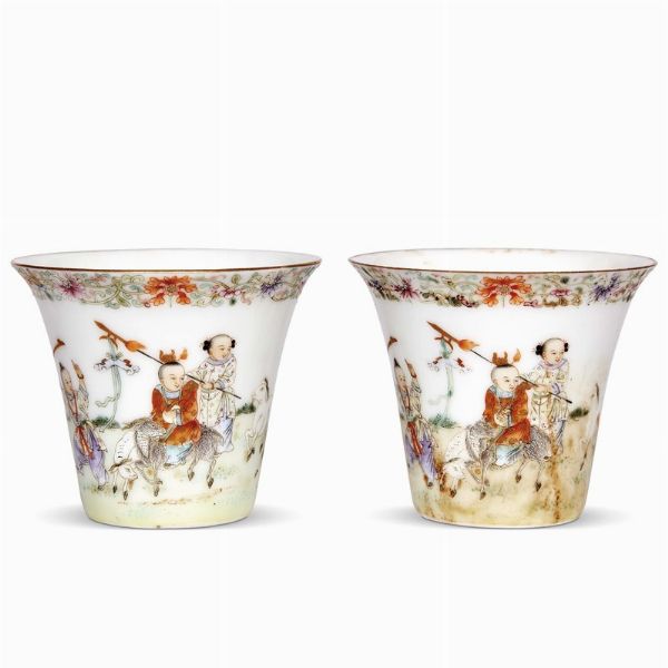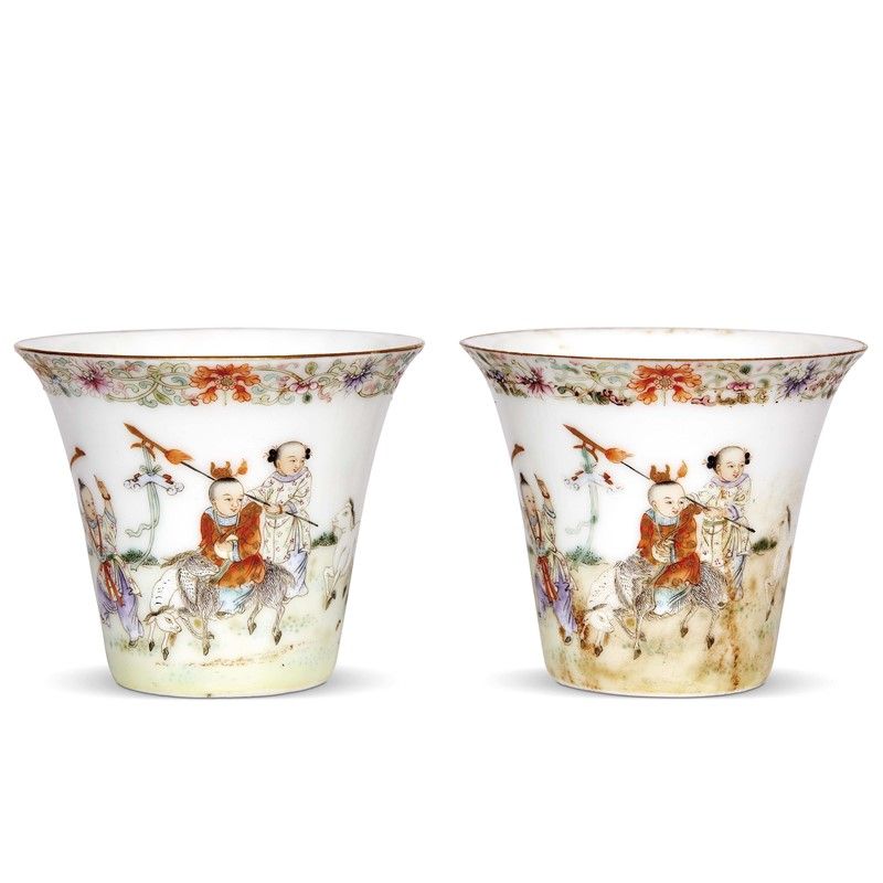 洪宪 1916 童戏图杯一组两件 洪宪年制底款 高 6,3厘米