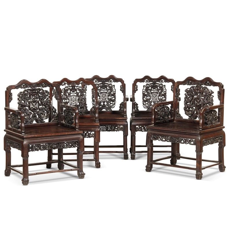 A GROUP OF FIVE ARMCHAIRS, CHINA, QING DYNASTY, 19TH CENTURY