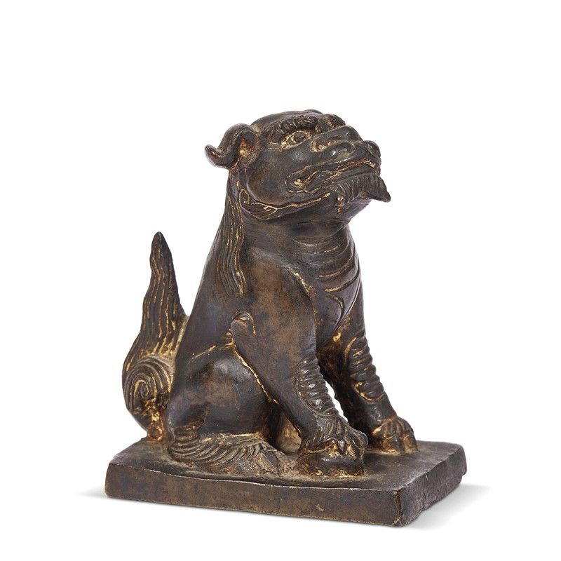 清 十七至十八世纪 铜胎鎏金狮子坐像 高10,5厘米