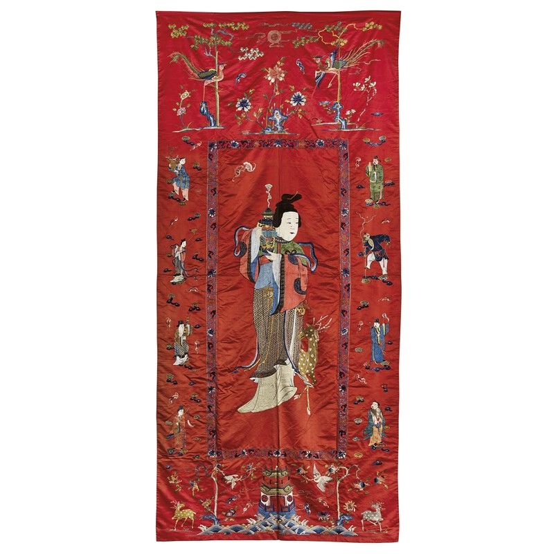 清 十九世纪 红地麻姑献寿图 尺幅318,5 x 145,2厘米