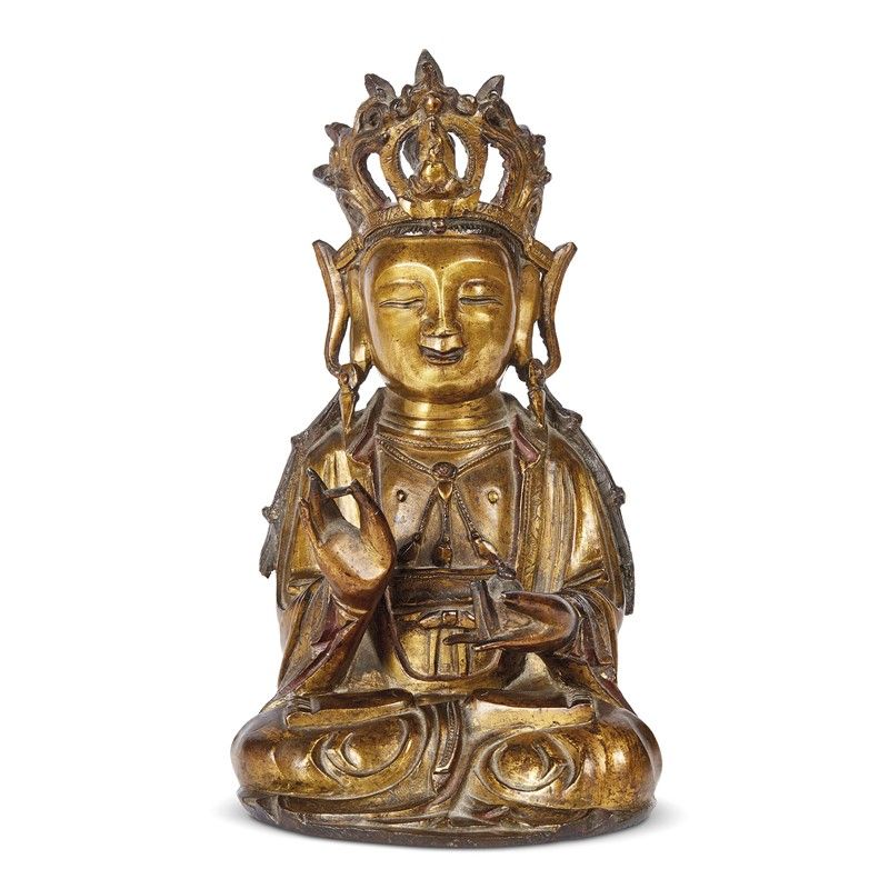 明 十六至十七世纪 铜鎏金观世音菩萨坐像 高 25厘米