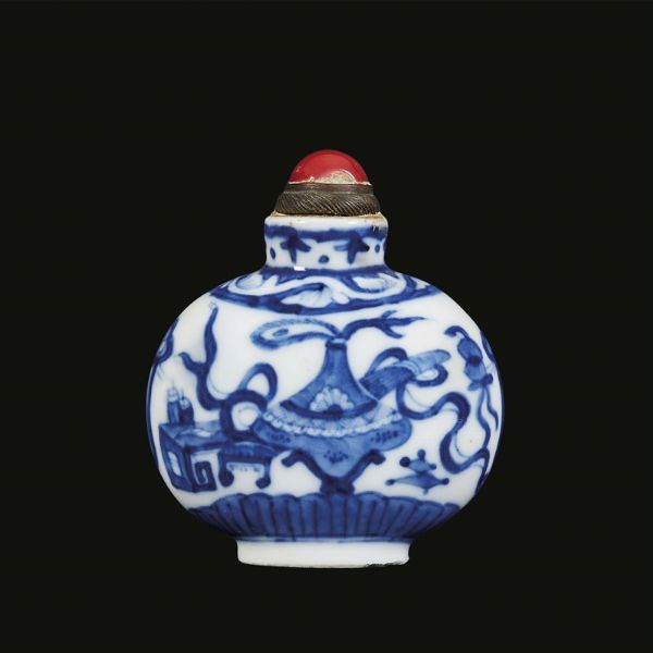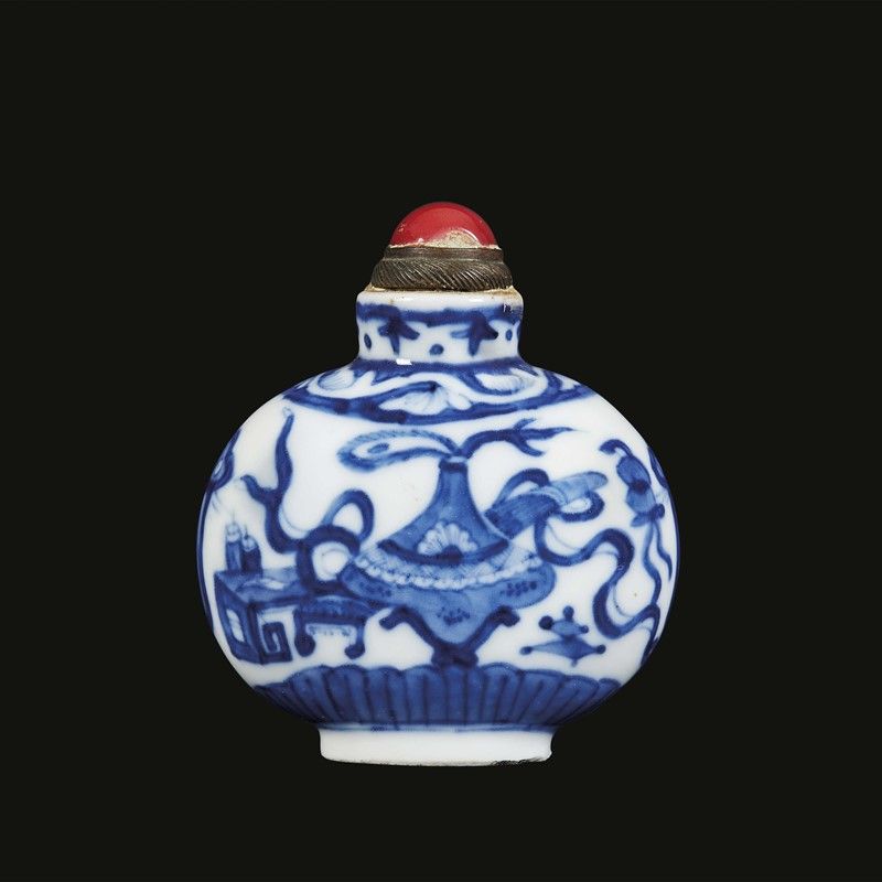 清 十九世纪 青花博古八宝纹鼻烟壶 高 7,2厘米