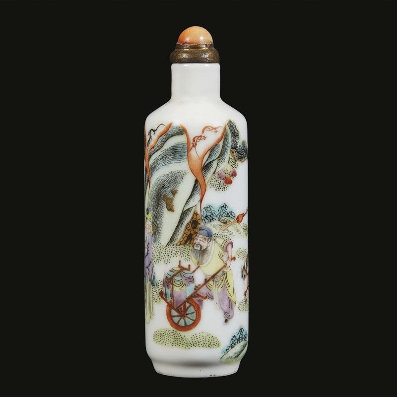清 十九世纪 粉彩人物故事纹鼻烟壶 高 9厘米