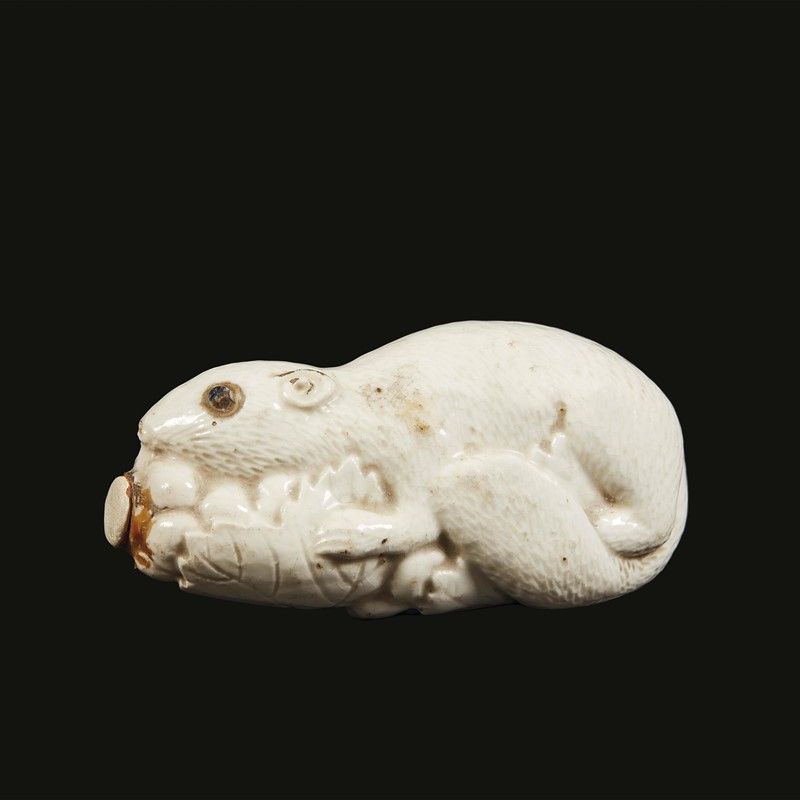 清 十九世纪 白瓷松鼠葡萄鼻烟壶 长 7,5厘米