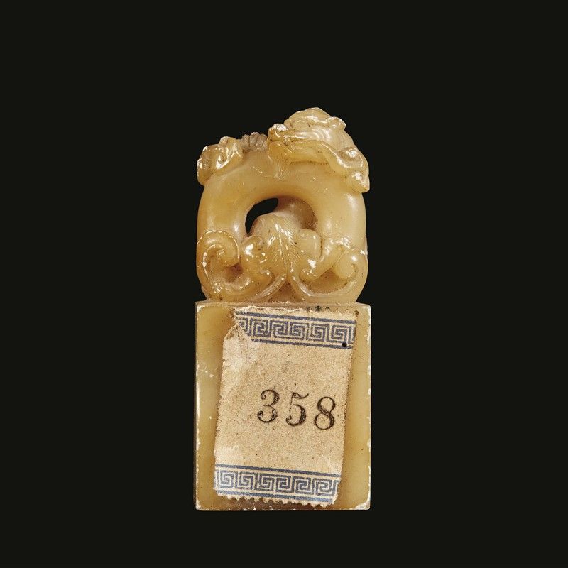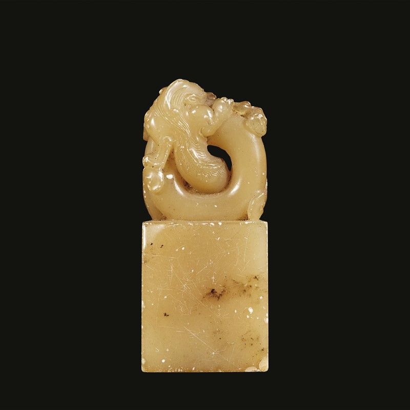 清 十八至十九世纪 皂石螭龙卧环章 高 5,8 厘米