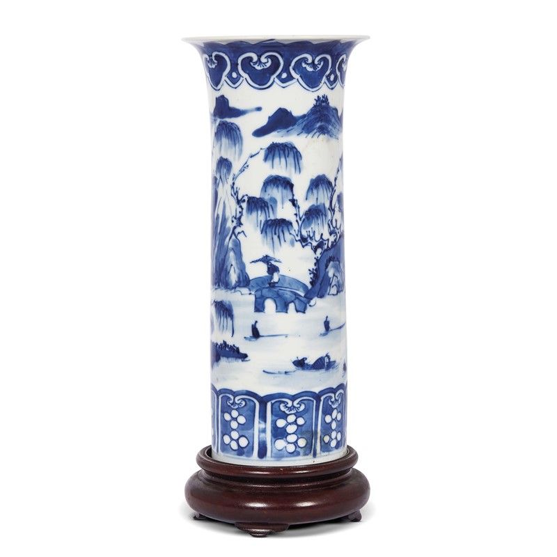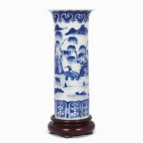 清 十九世纪 青花山水纹筒瓶 高25,6厘米