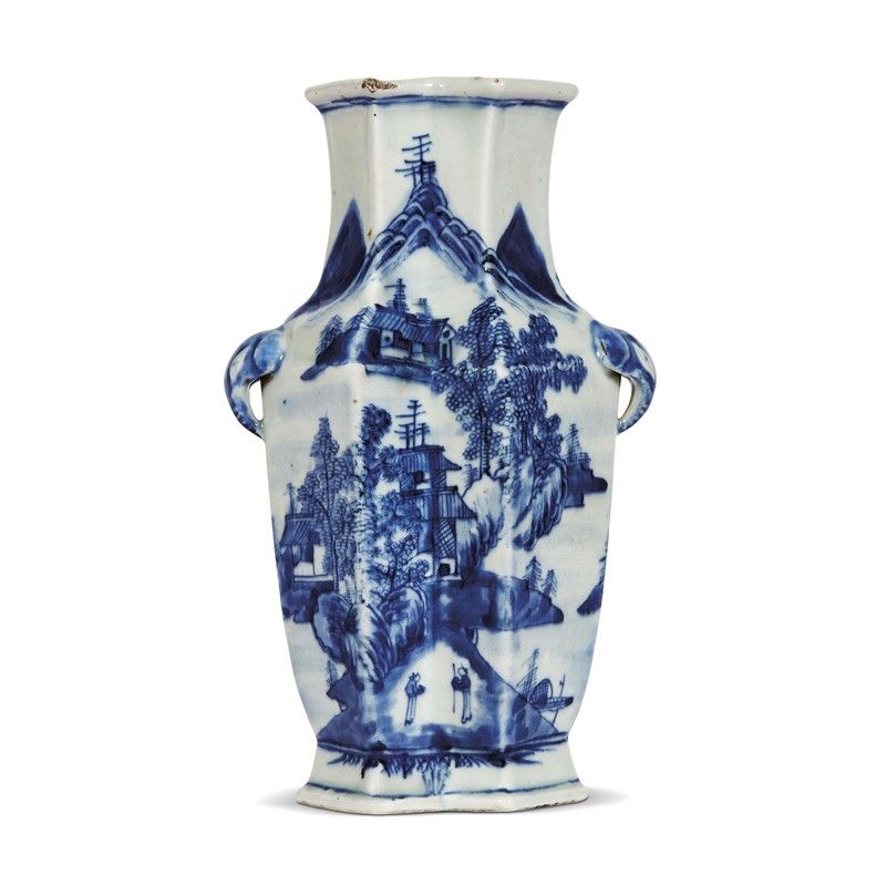 A OCTAGONAL WHITE-BLUE VASE, CHINA, QING DYNASTY, 19TH CENTURY