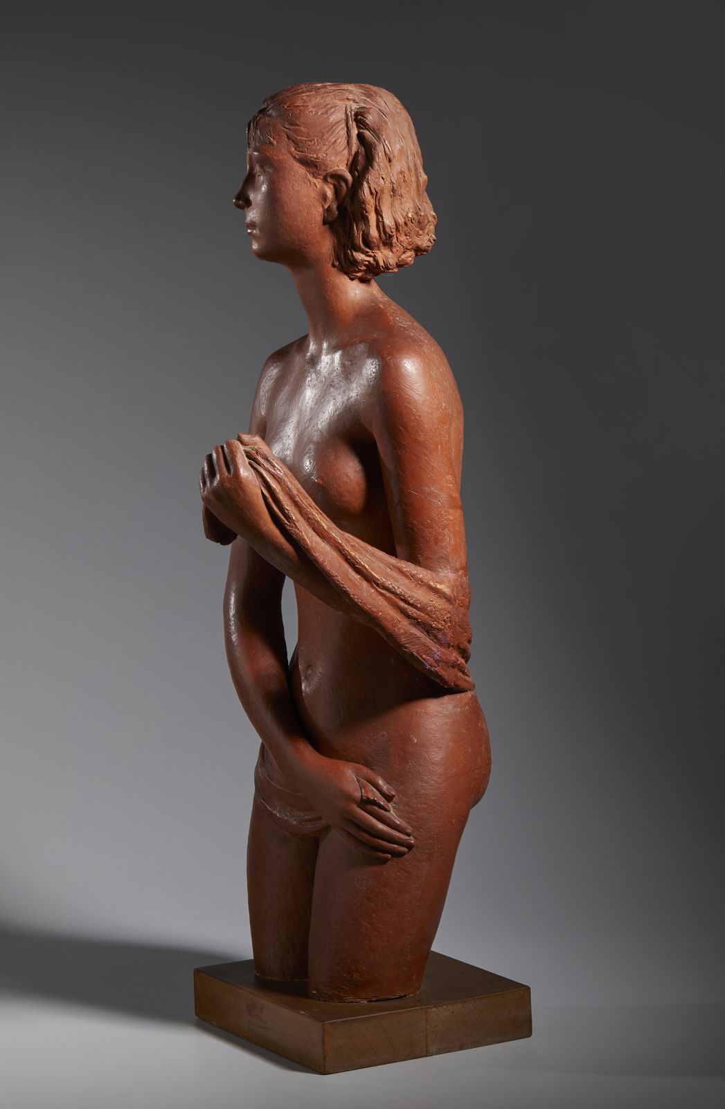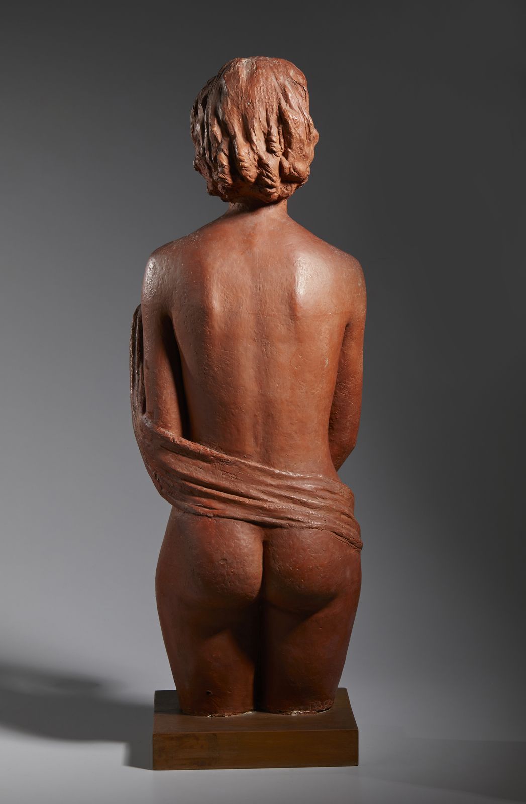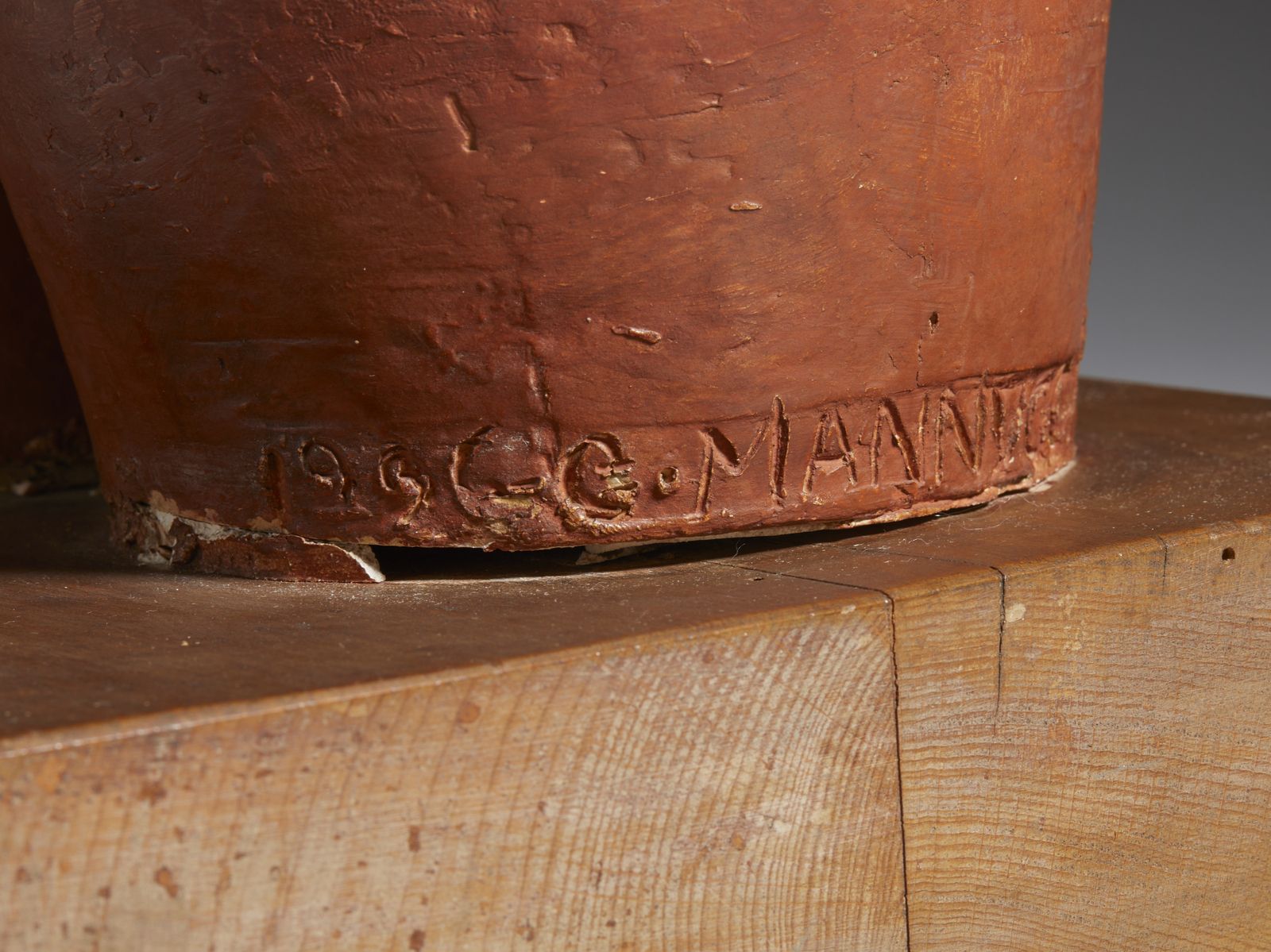 Restauri, lievi mancanze. Firmato e datato 1936. Dimensioni base in legno: 6x31x26,5 cm. Provenienza: Collezione privata, Firenze.