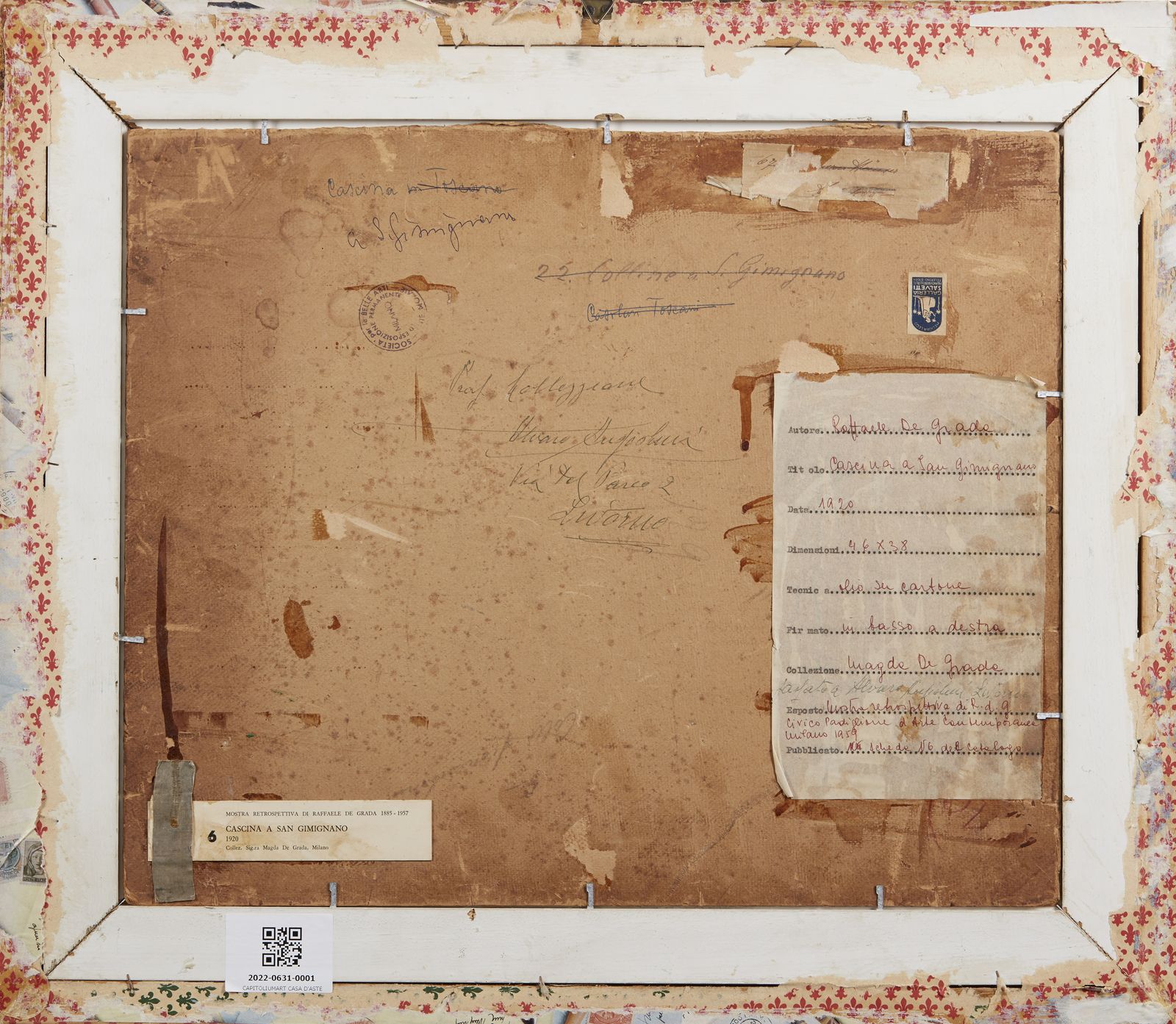 Firma monogrammata in basso a destra. Al retro cartiglio descrittivo. Provenienza: Collezione Magda De Grada, Milano. Esposizioni: Mostra retrospettiva Raffaele De Grada, Civico Padiglione d'Arte Contemporanea. Milano, 1959. Bibliografia: AA.VV. mostra retrospettiva di Raffaele De Grada, Edizioni dell'ente manifestazioni milanesi, 1959, scheda n.6.